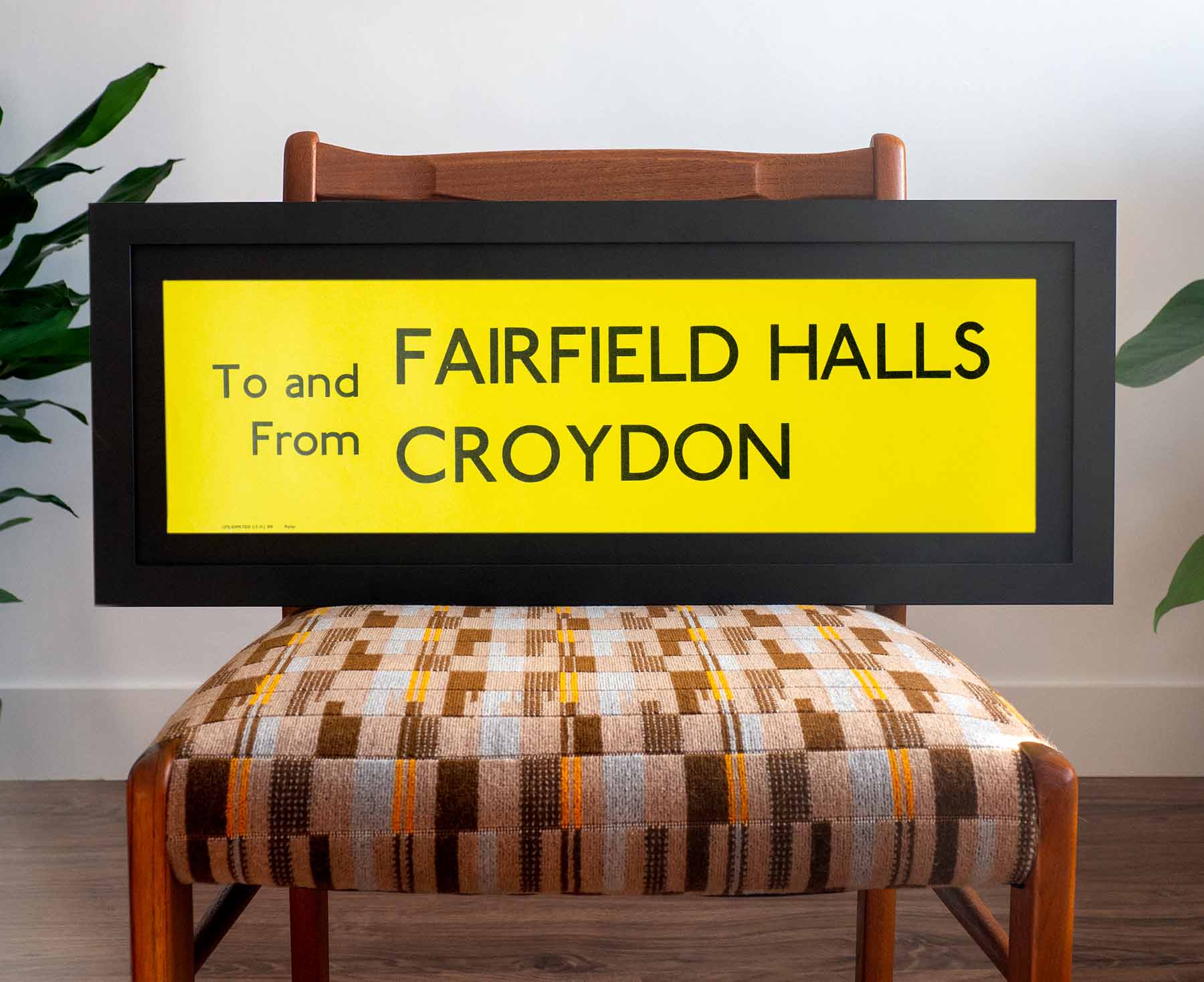 Fairfield Halls Croydon Framed Yellow London Bus Blind