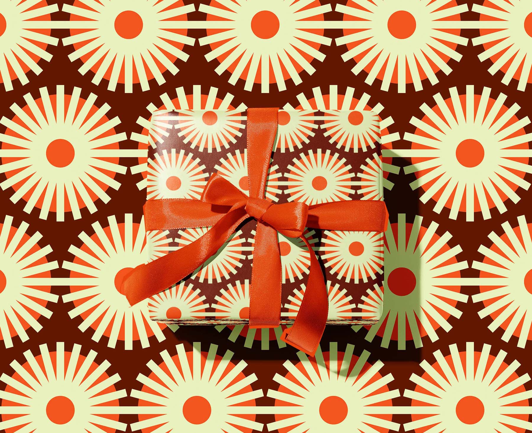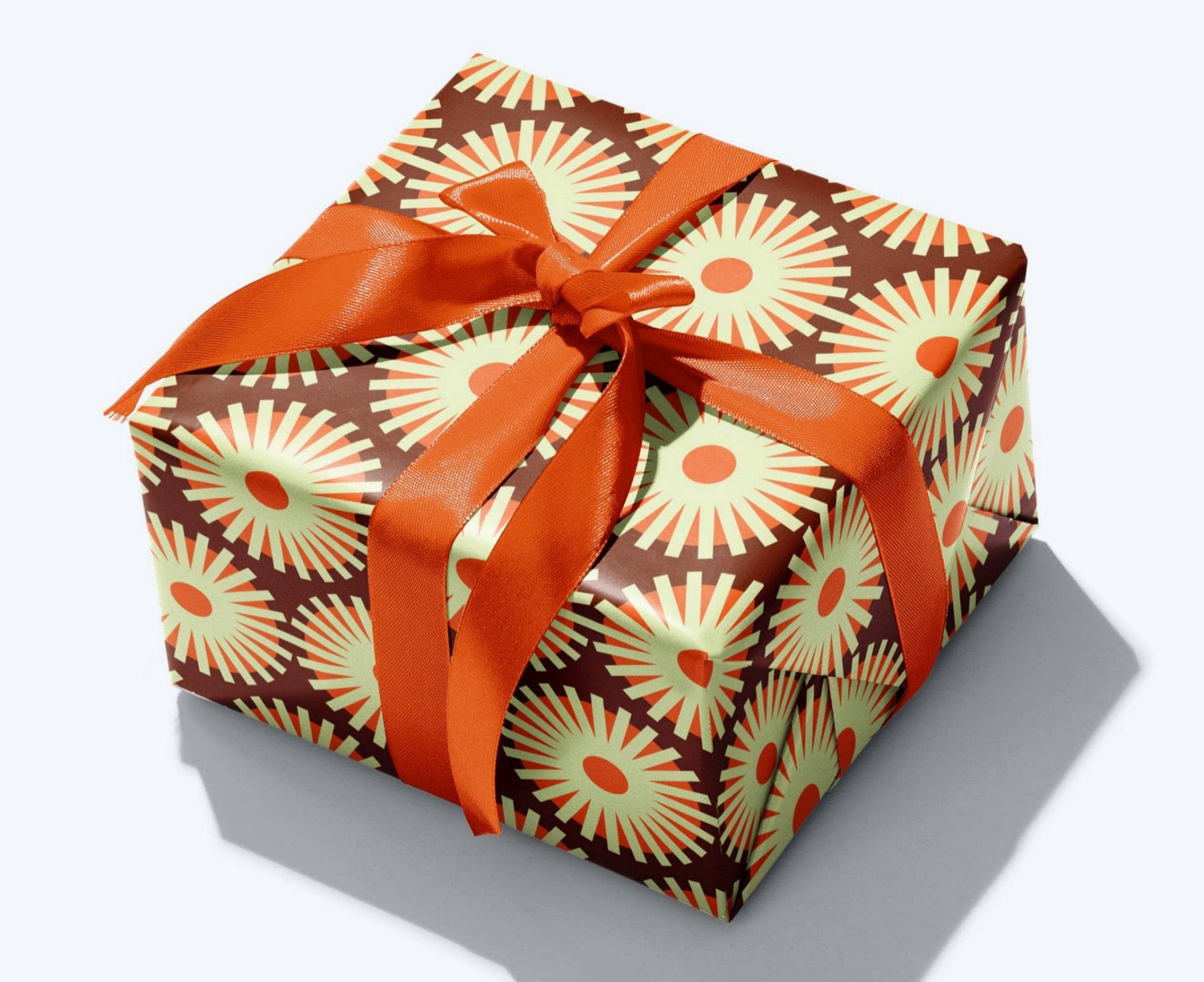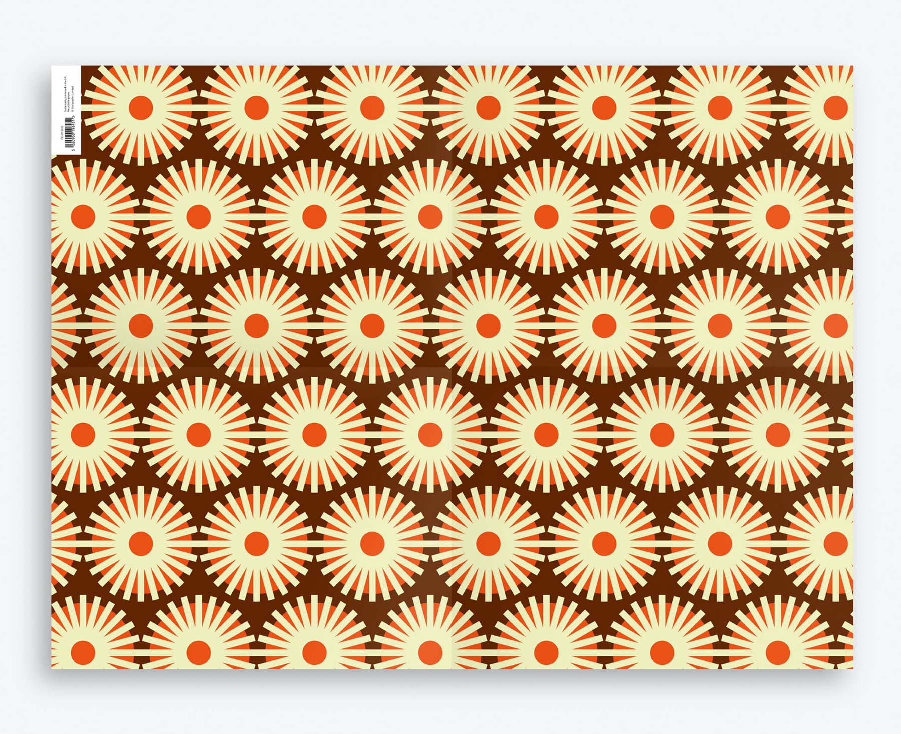 Inspired by music festivals, this gorgeous Storigraphic wrapping paper features a bold geometric pattern in glorious orange, brown and cream. Wrapping paper is sold as individual 50cm x 70cm sheets and will be supplied folded. It is sustainably printed in the UK. The ribbon in the photos is for illustrative purposes only and is not included, it's kind of like a serving suggestion!