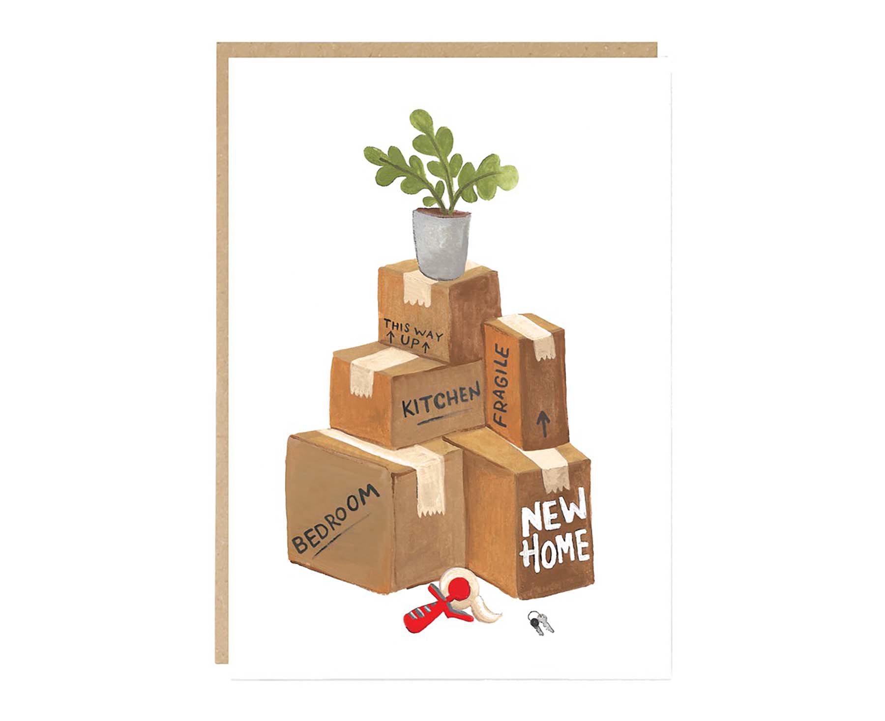 Nothing says new home better than a pile of boxes and a house plant! This beautifully illustrated new home card from Jade Fisher sums up the moving house experience perfectly!
