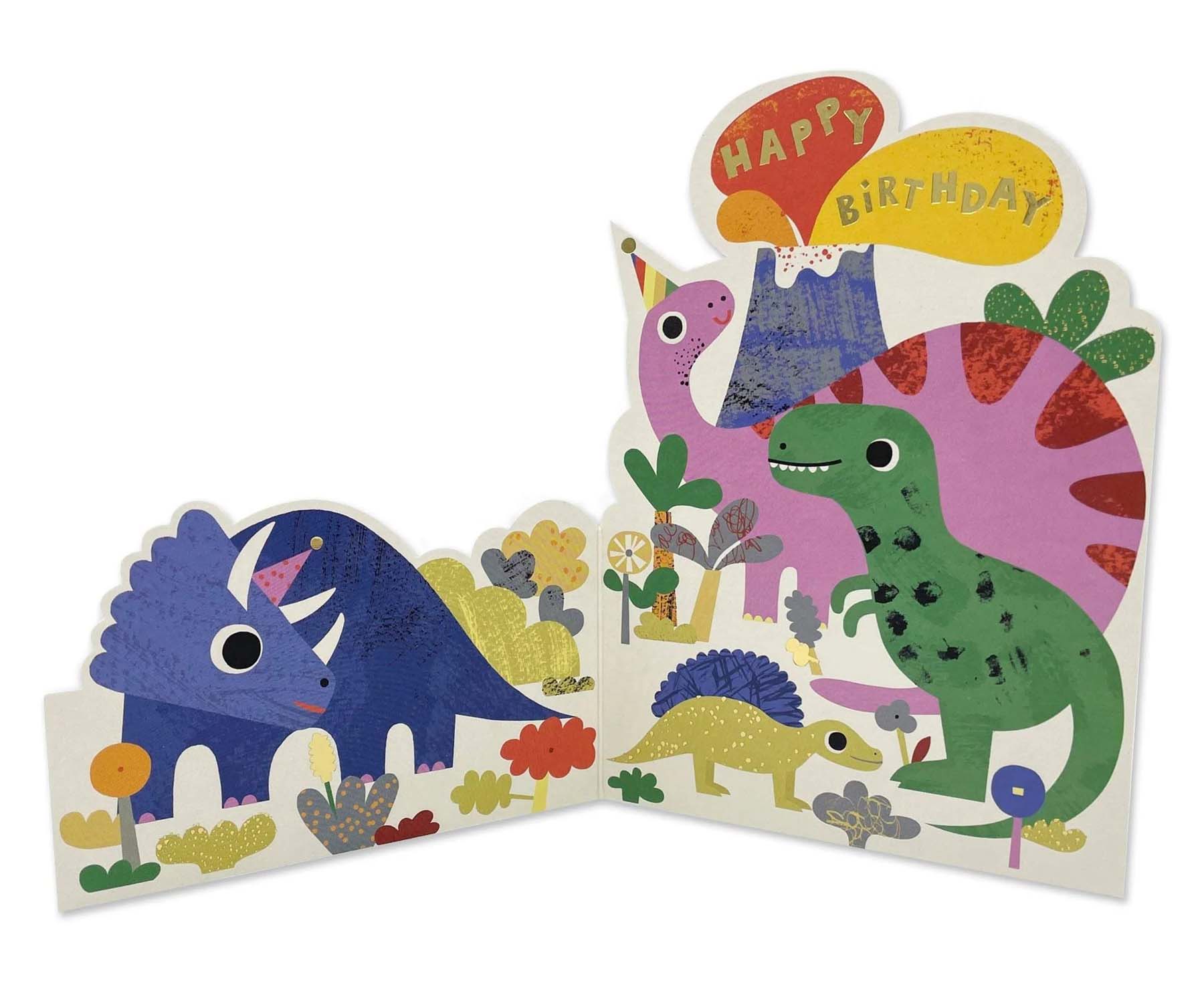 Fold Out Dinosaur Foiled Kids Birthday Card