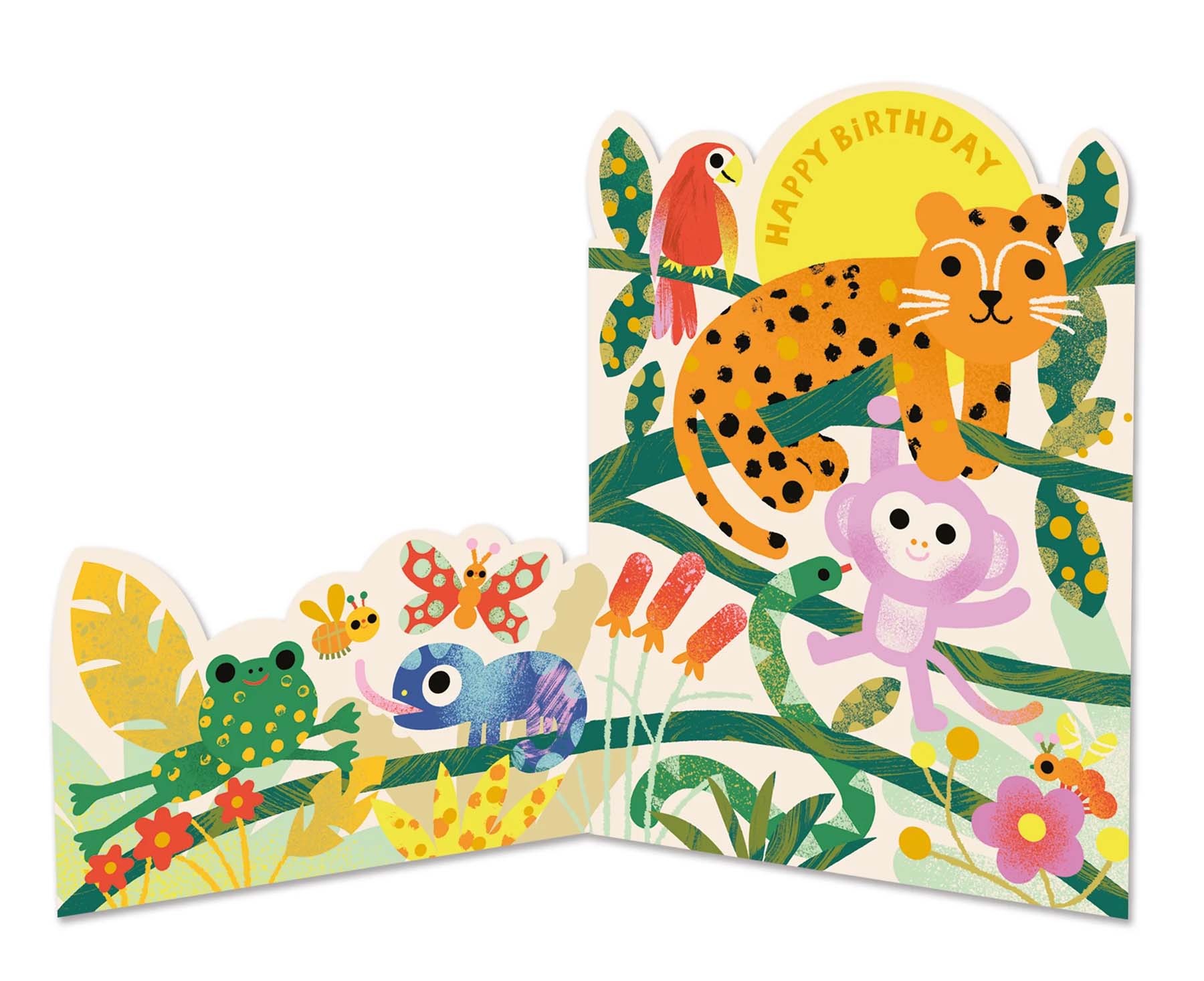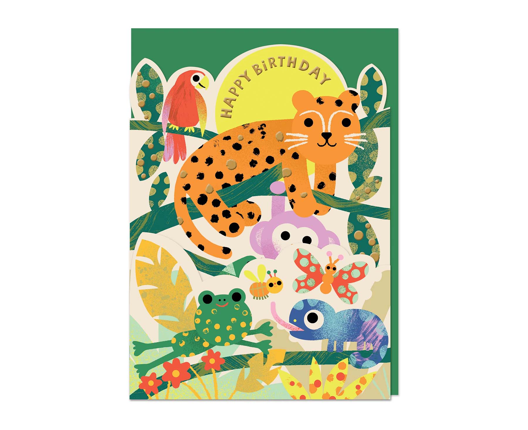 Fold Out Jungle Animals Foiled Kids Birthday Card