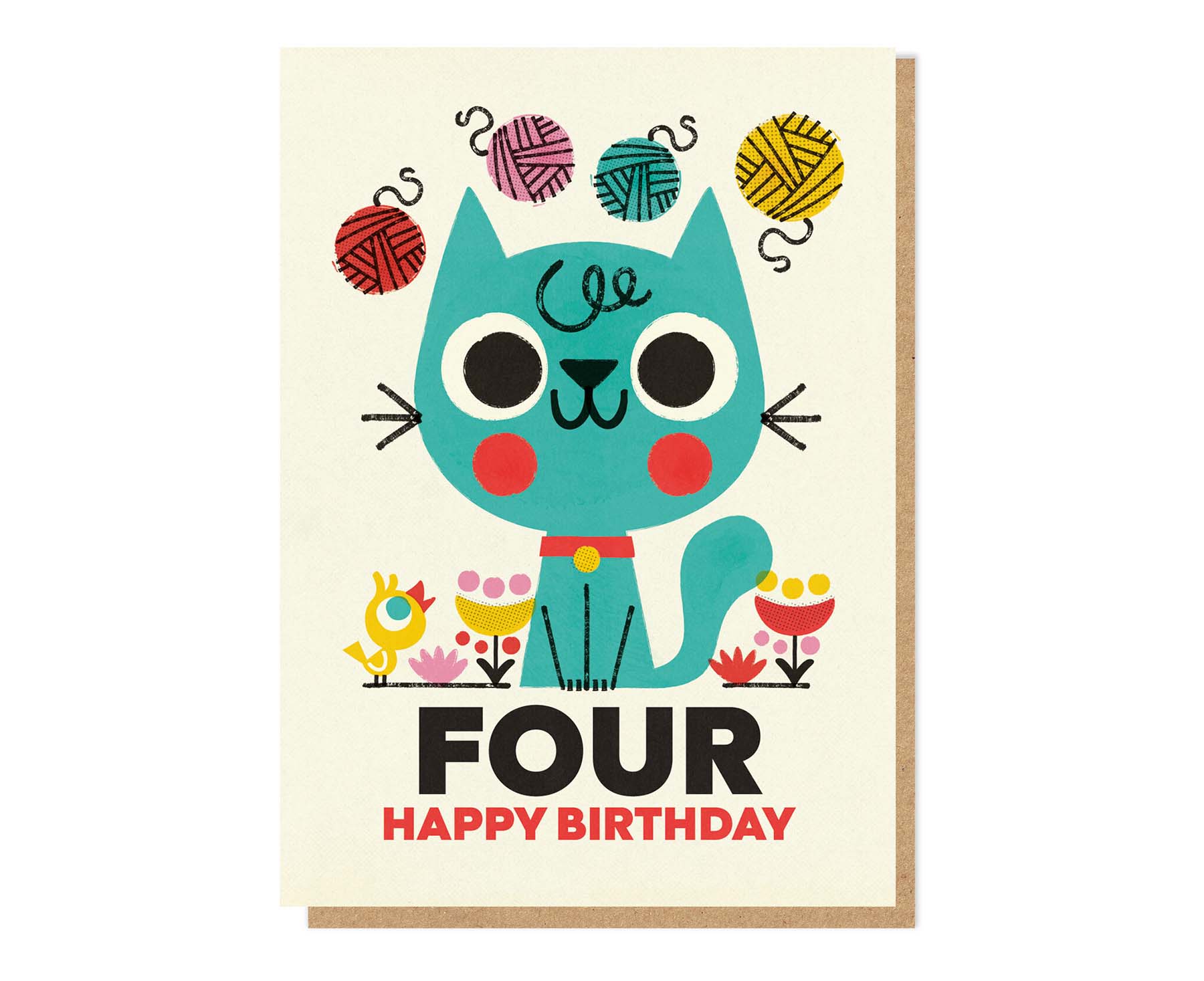 Part of Stormy Knight's collaboration with Spanish design duo Pintachan, this cute Kitty Cat number four 4th birthday card is full of retro charm and the spot UV gloss details really make it shine.