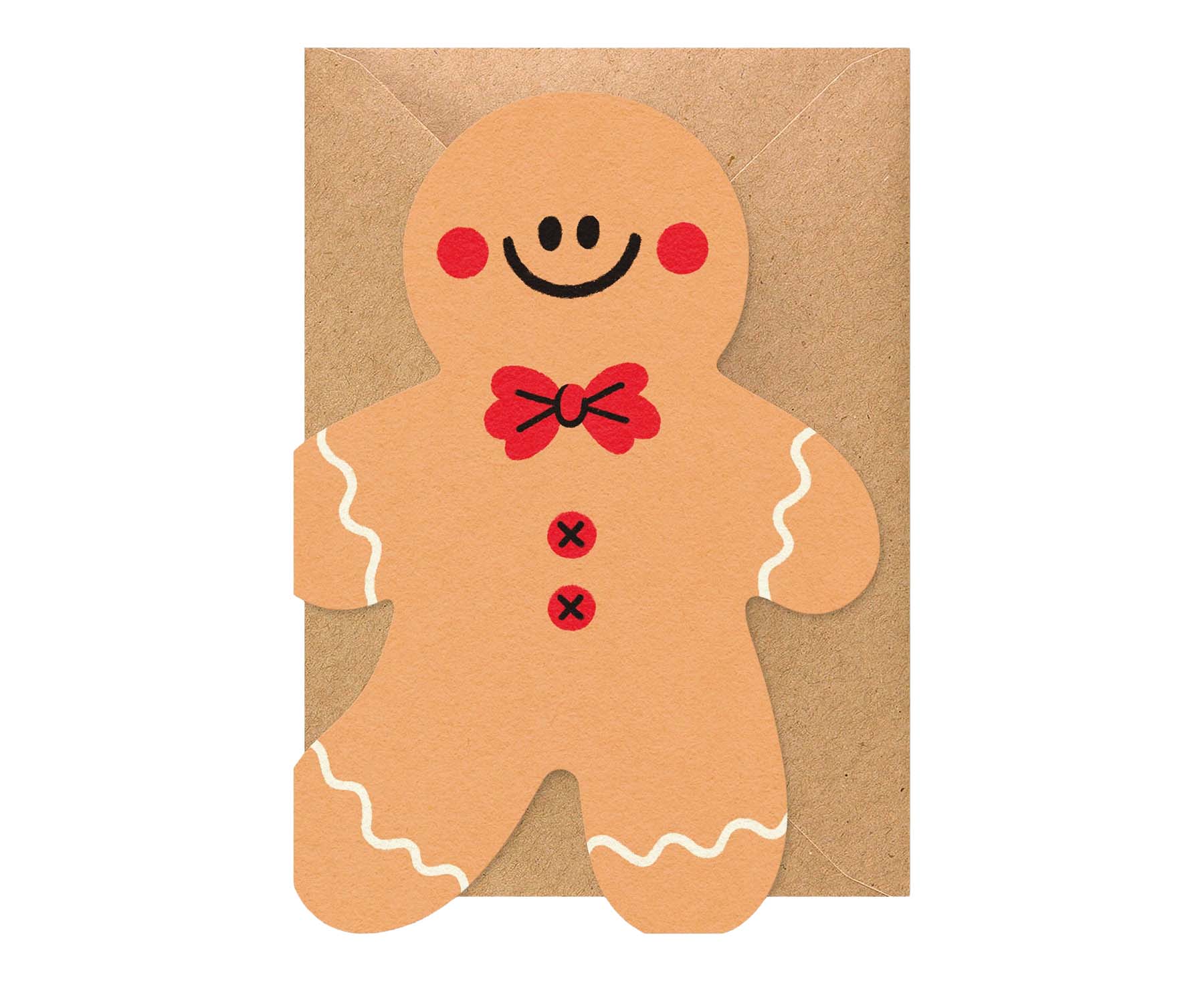 Part of Studio Boketto's collaboration with illustrator Edyta Demurat, this cute Gingerbread Man Christmas card is cut to shape so he stands up on a shelf or mantelpiece. The slightly textured card give this Christmas card a premium finish.
