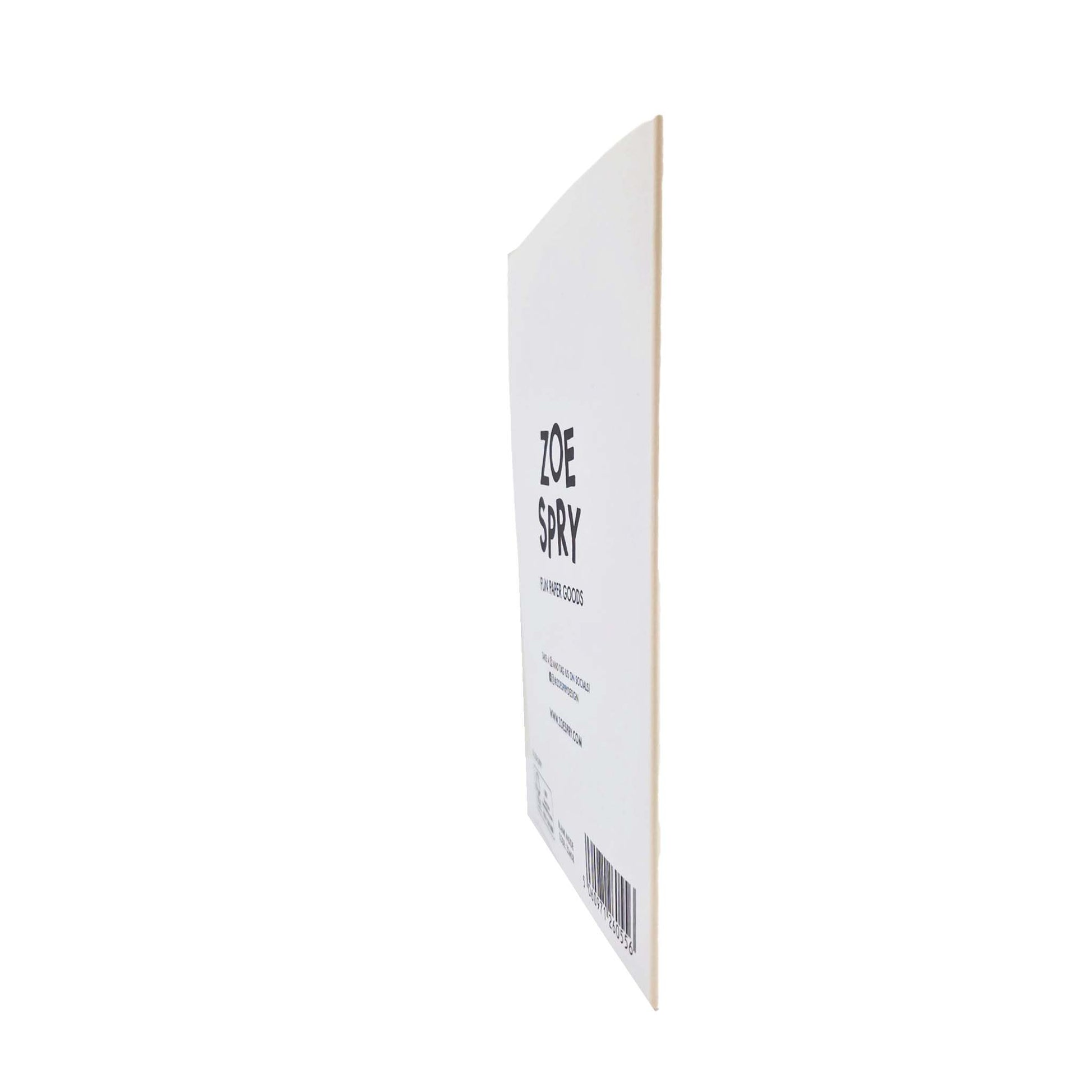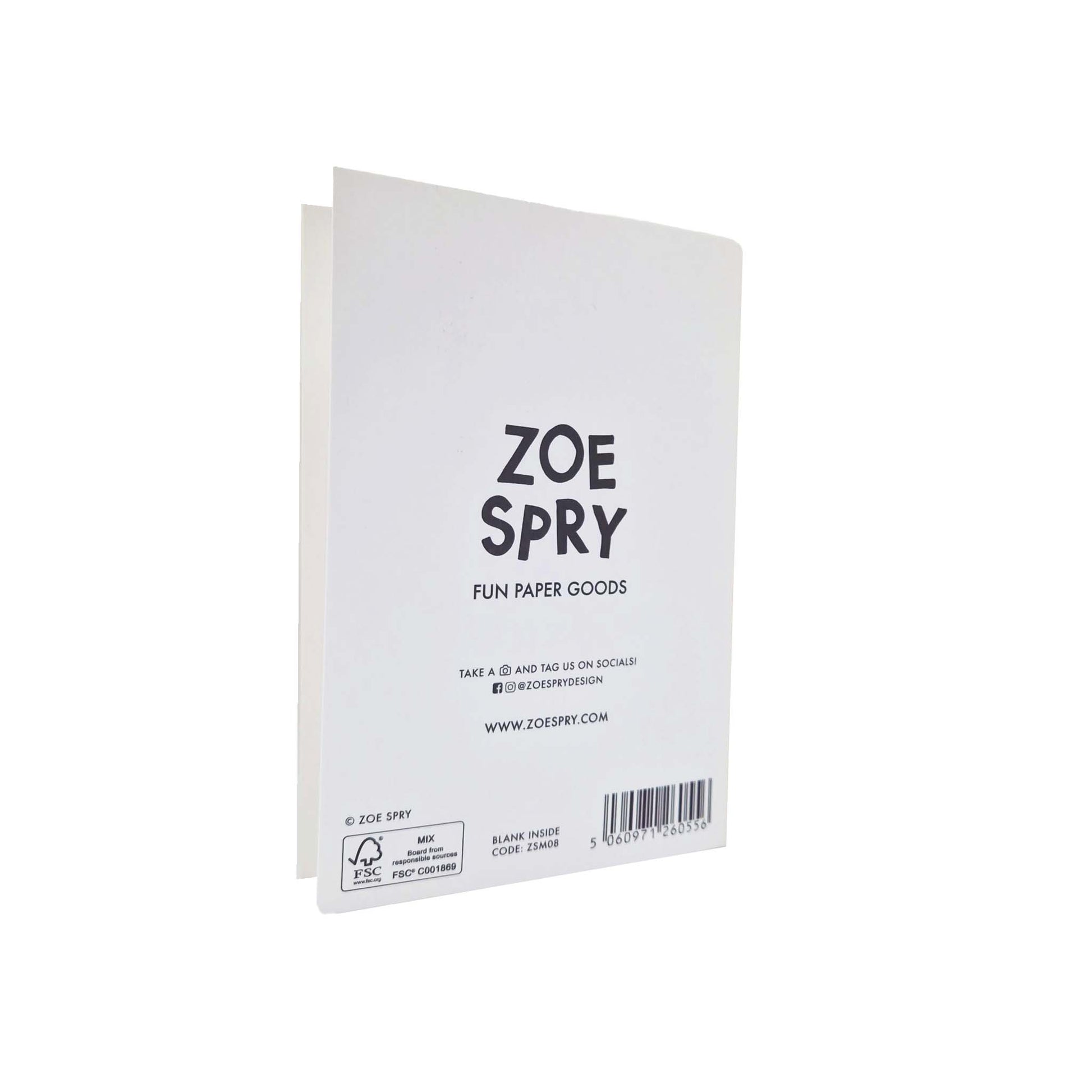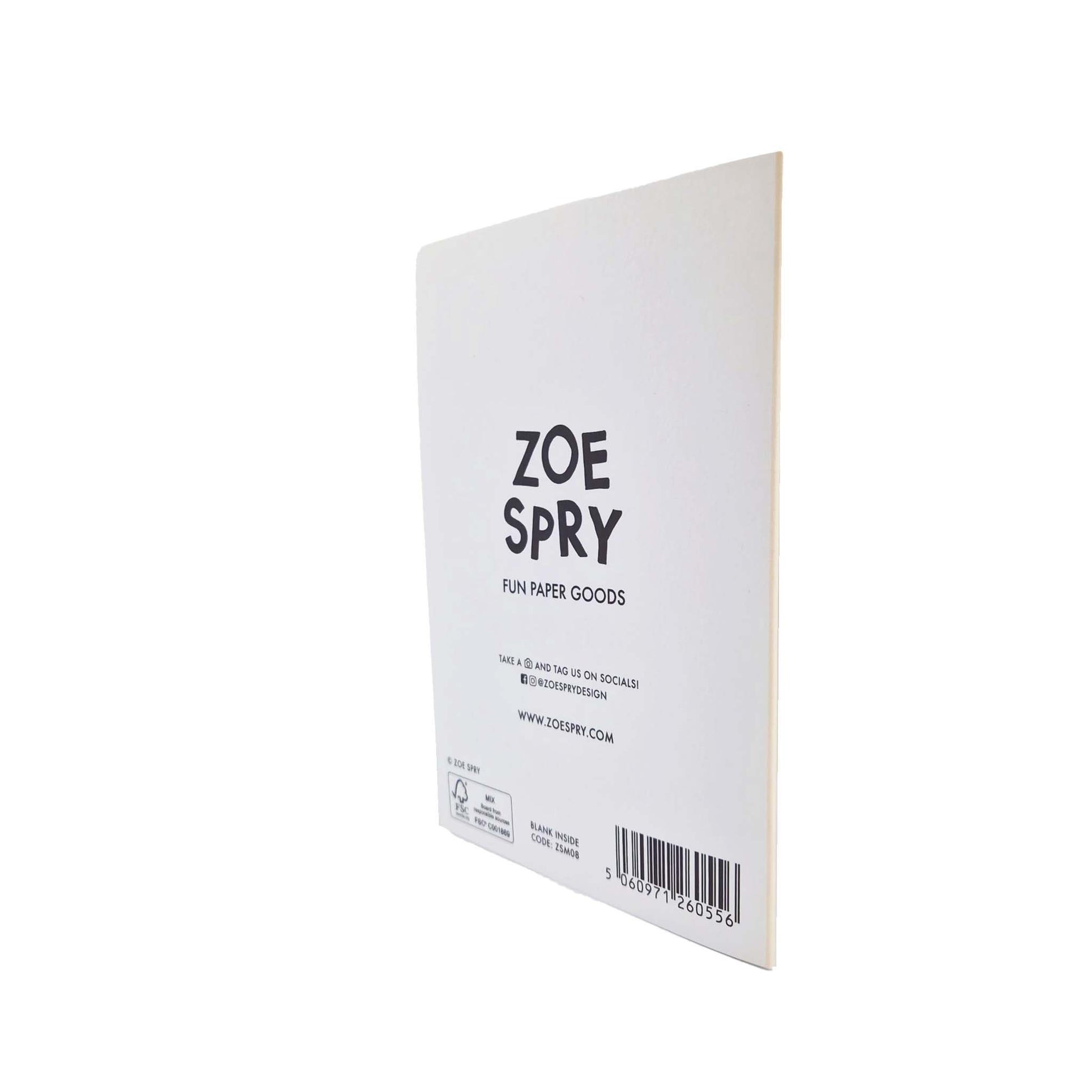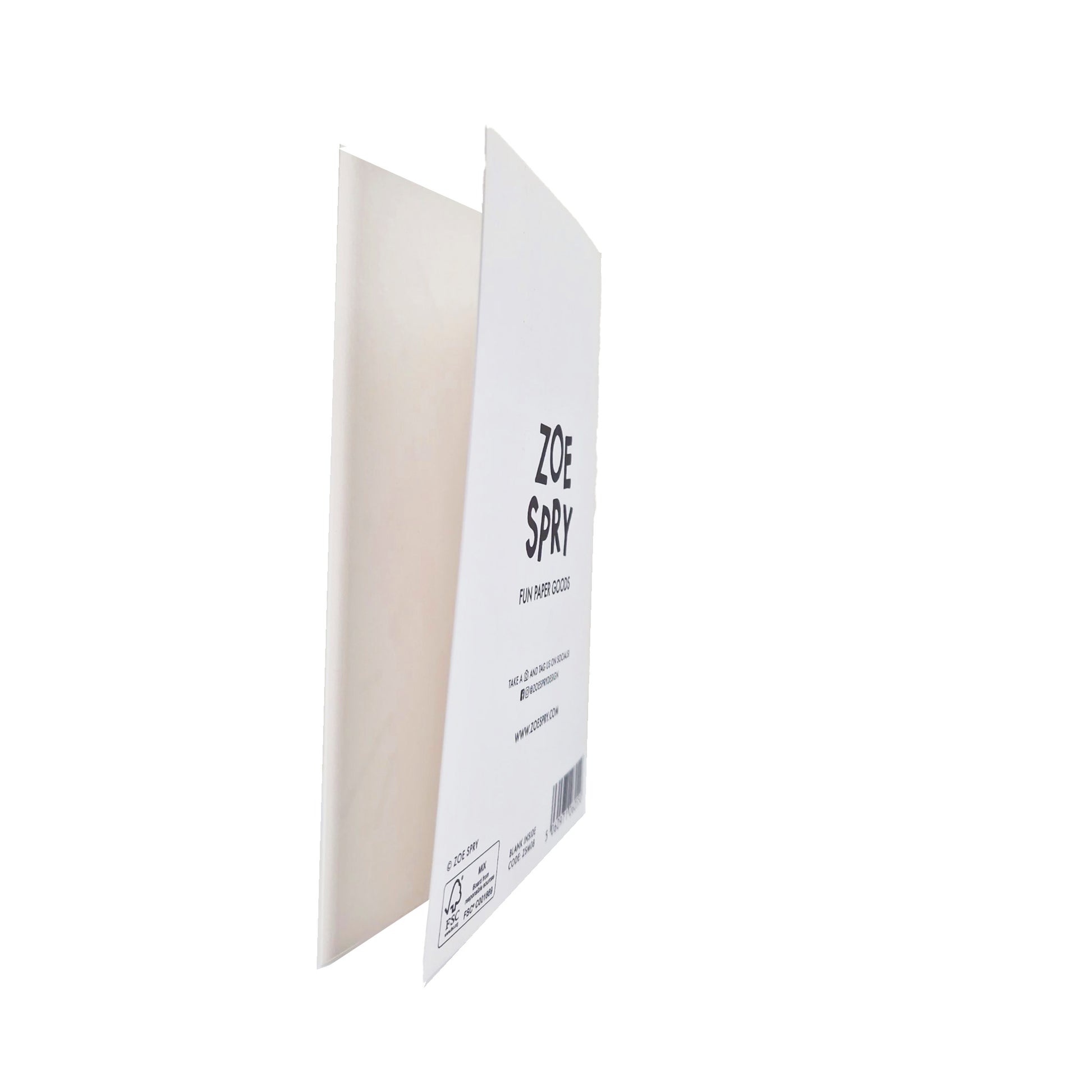 A6, printed on 300gsm FSC certified board, blank inside, supplied with a brown kraft envelope in a compostable bio wrapper.