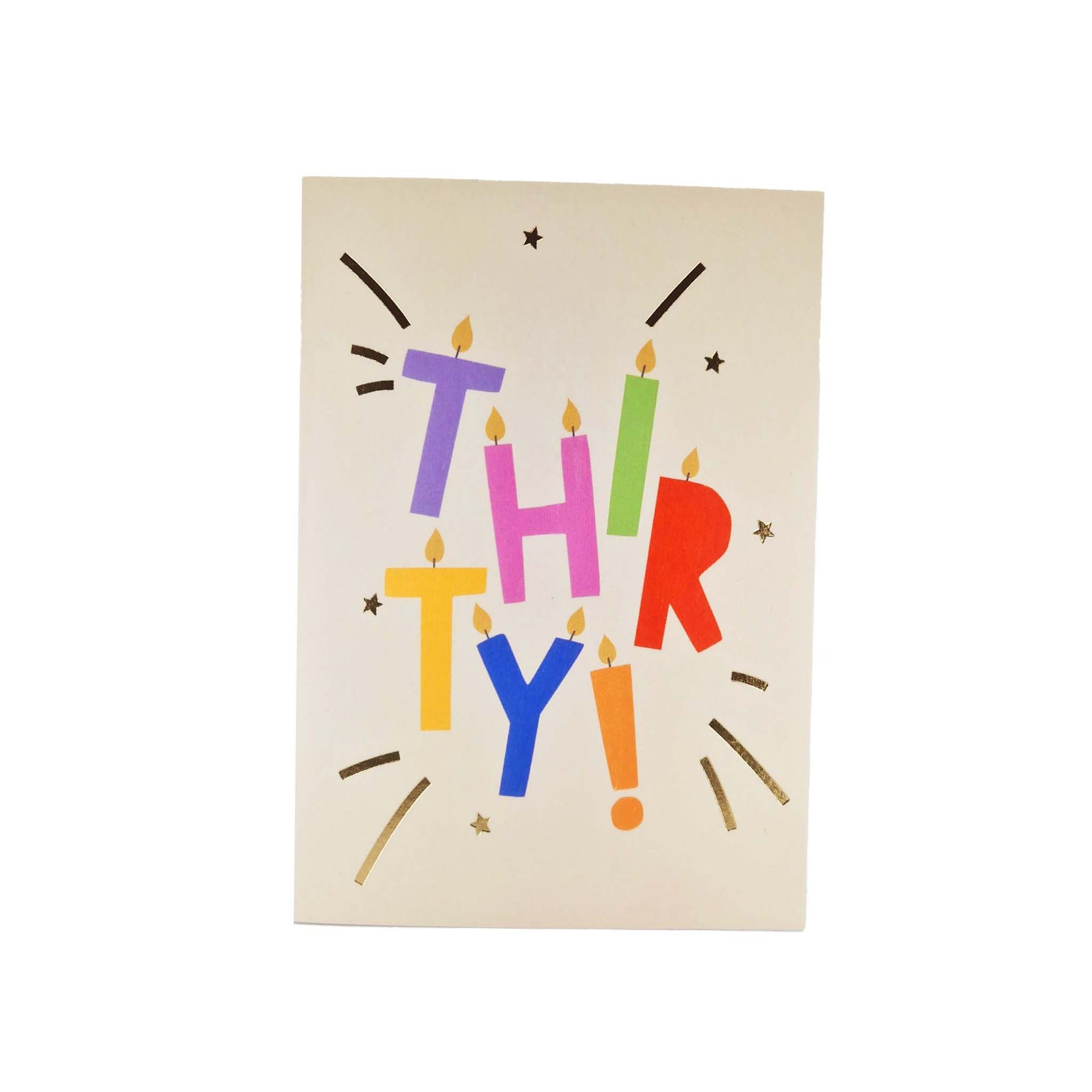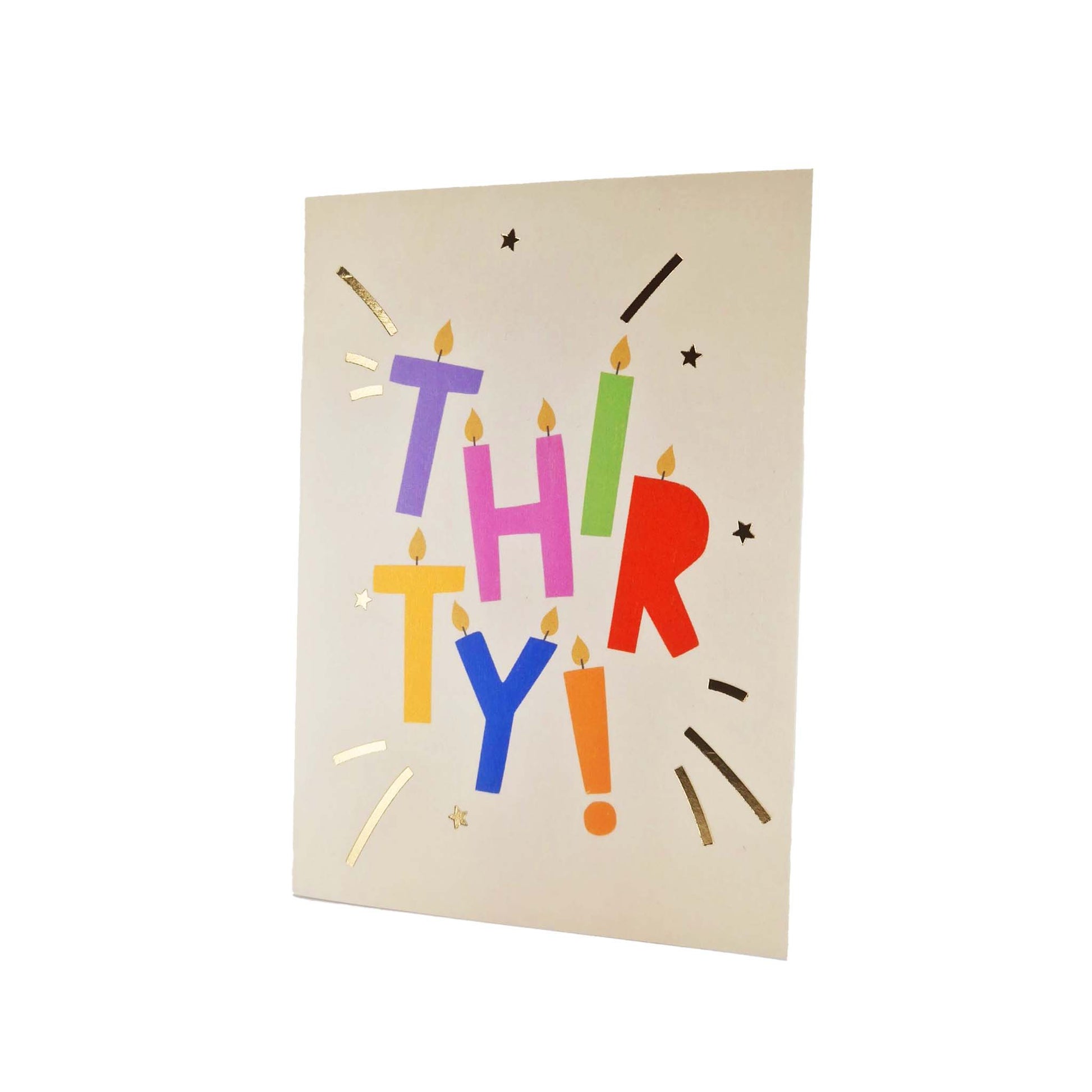 Gold Foiled Thirty! Letter Candles Birthday Card