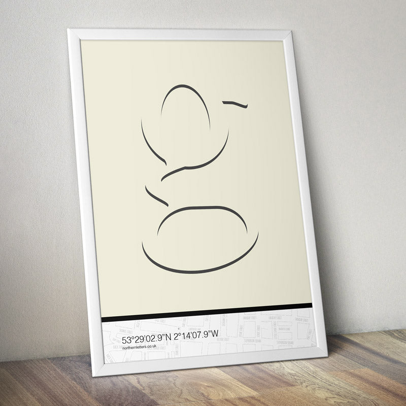 With the exact co-ordinates of where the original letter that inspired this design was found, the Northern Letters GPS prints make the perfect item for type hunters and anyone with initials! Printed on a beautiful 250gsm uncoated stock.