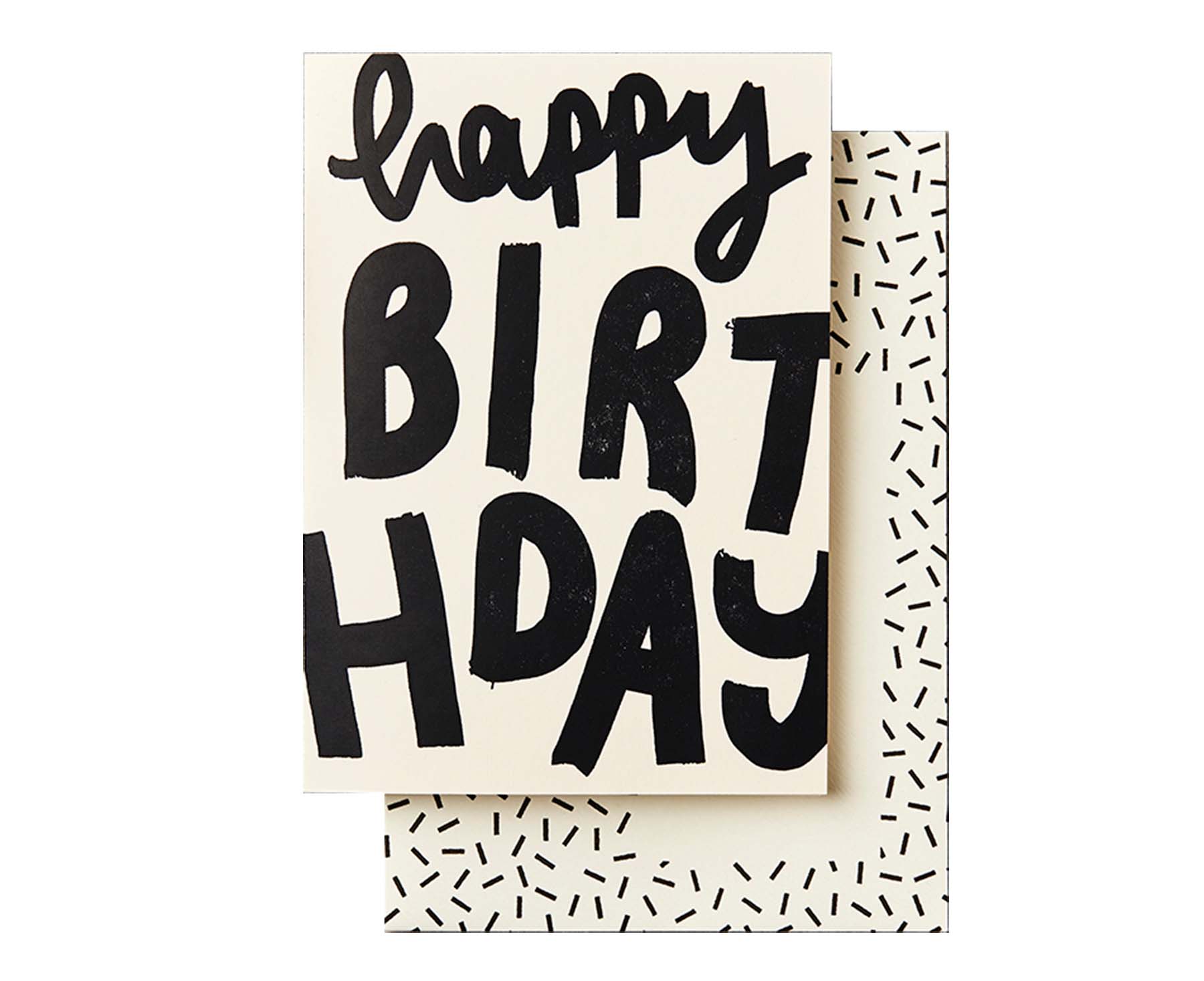 Inspired by wildlife and playful painting, this gorgeous birthday card with its matt black foiling lettering, is perfect for kids and adults alike. It's printed on thick 385gsm recycled card stock and comes with a co-ordinating printed envelope.