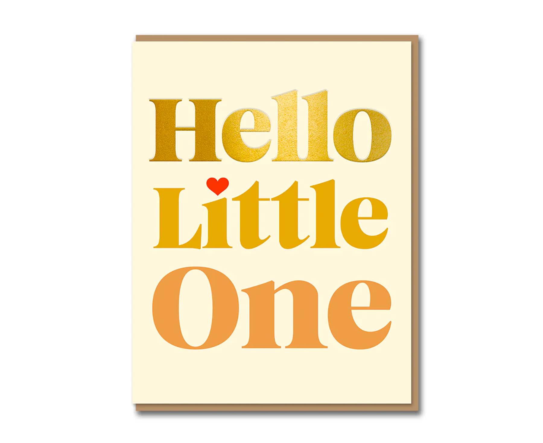 Part of 1973's Serif collection, this beautiful Hello Little One new baby card features gorgeous typography with glorious gold foiling and vibrant spot colour printing in Pantone inks.