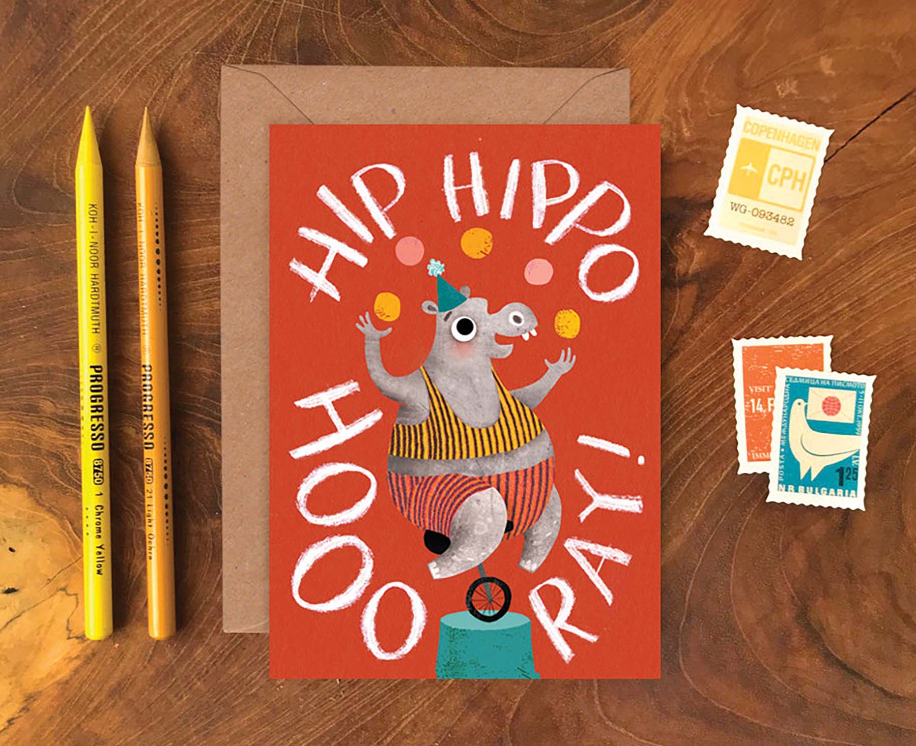 Hip Hippo Hooray! Hippo Congratulations or Birthday Card