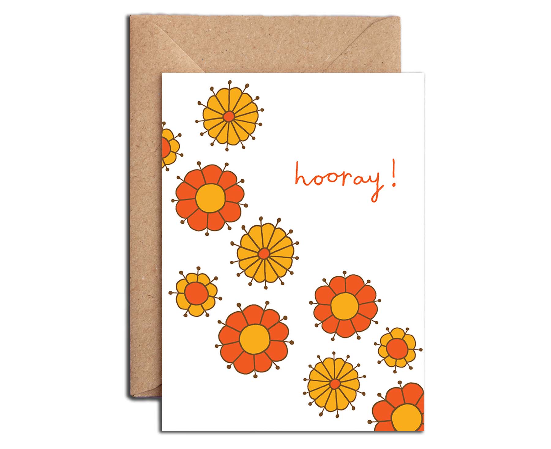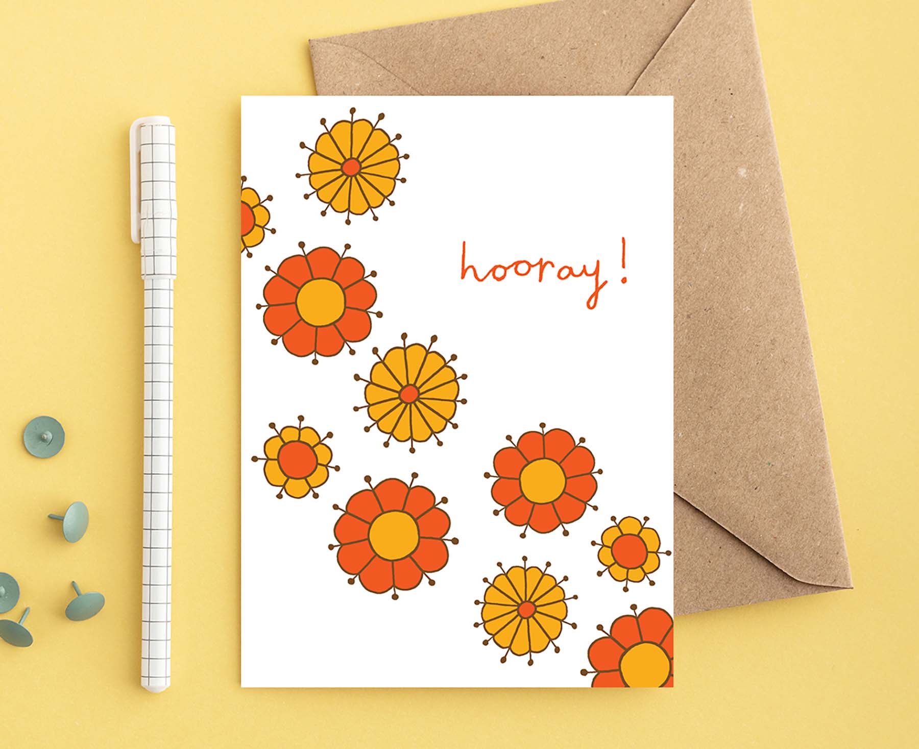Bring some cheer to someone's special day or event with this retro inspired floral Hoopray card. It's hand drawn by Pembrokeshire based You've Got Pen On Your Face and printed in the UK.