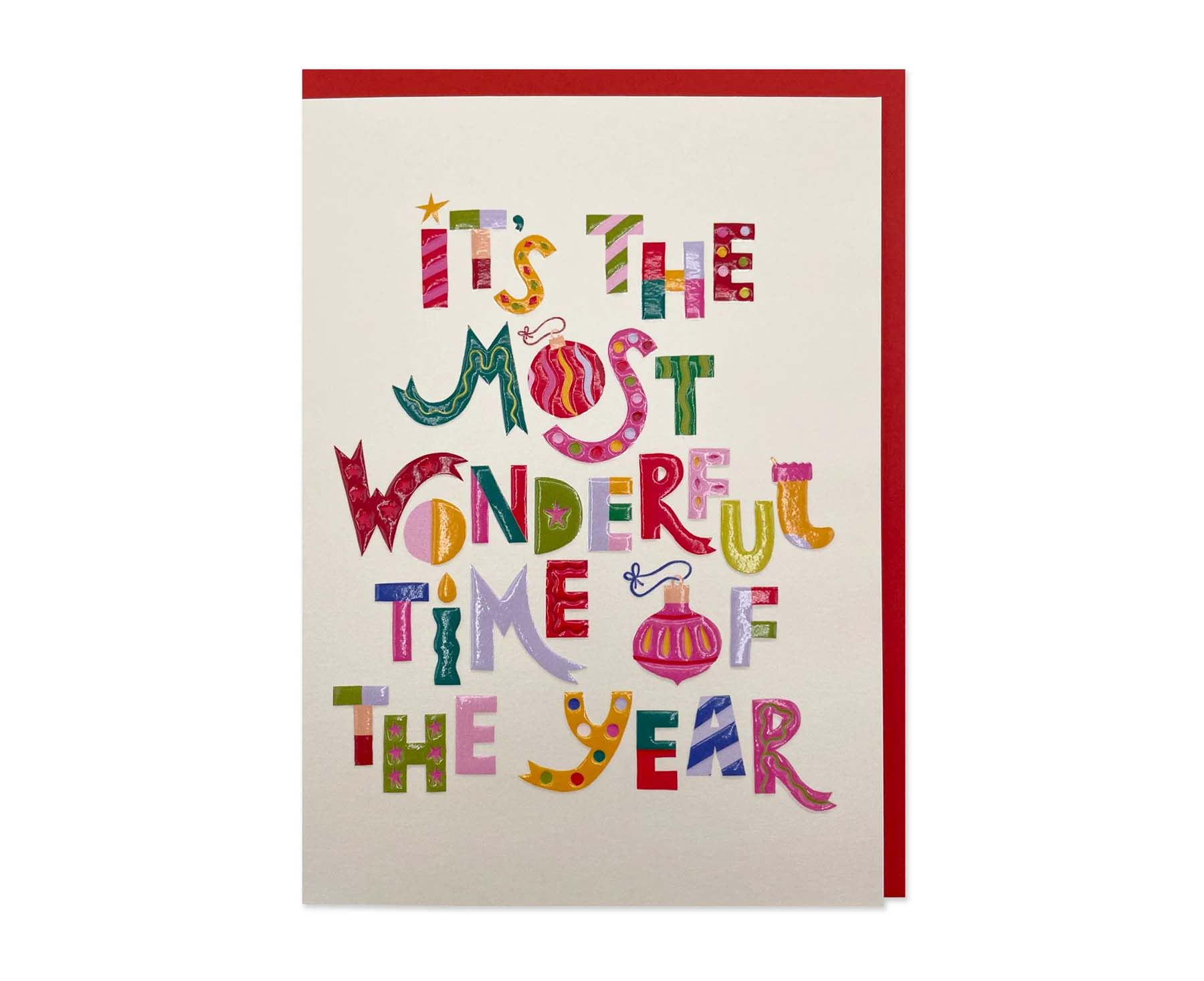 It's The Most Wonderful Time Of The Year embossed Christmas card