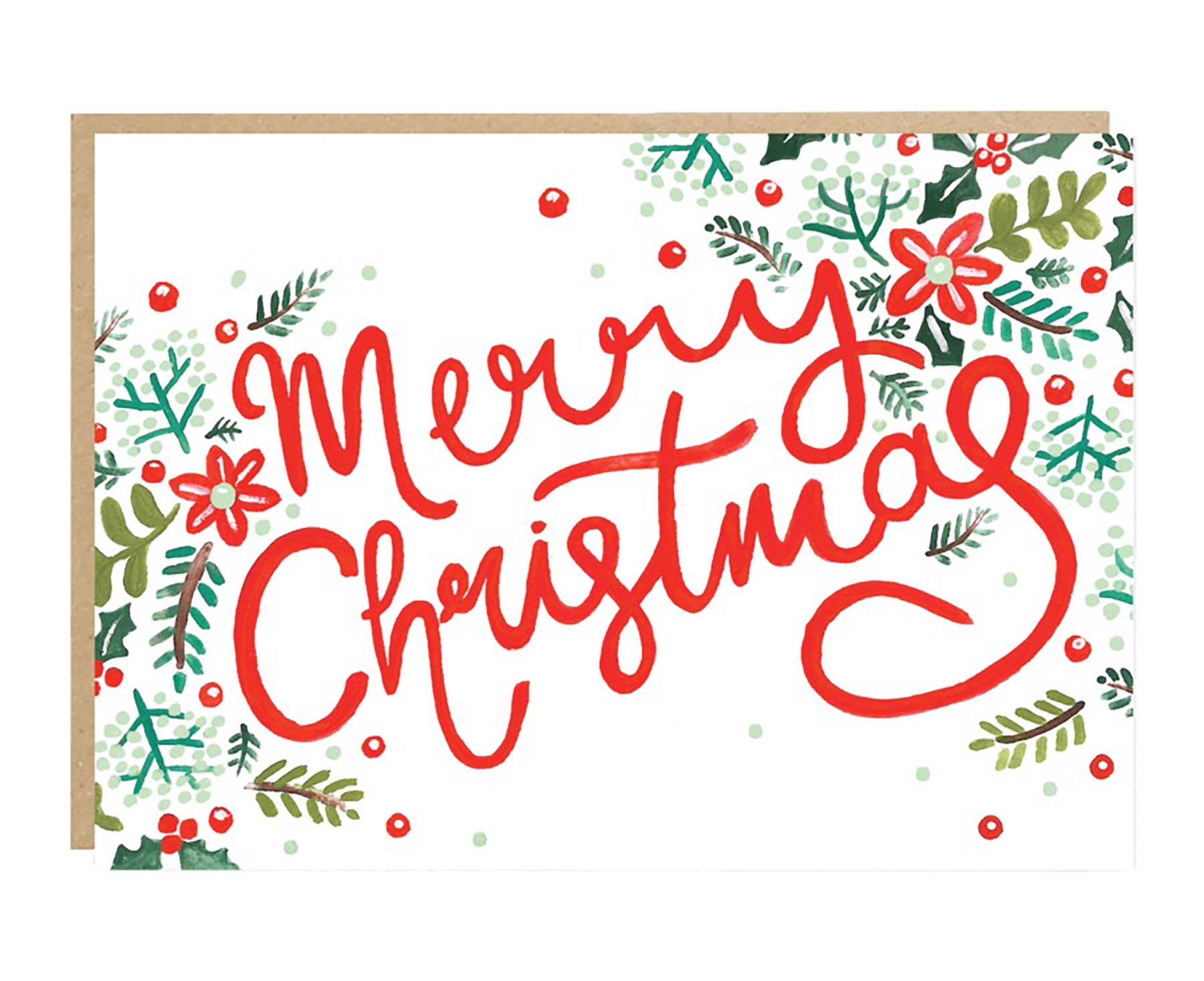 With its festive foliage and gorgeous hand lettering, this beautifully illustrated Leafy Merry Christmas Christmas card by Jade Fisher is full of charm and joy.