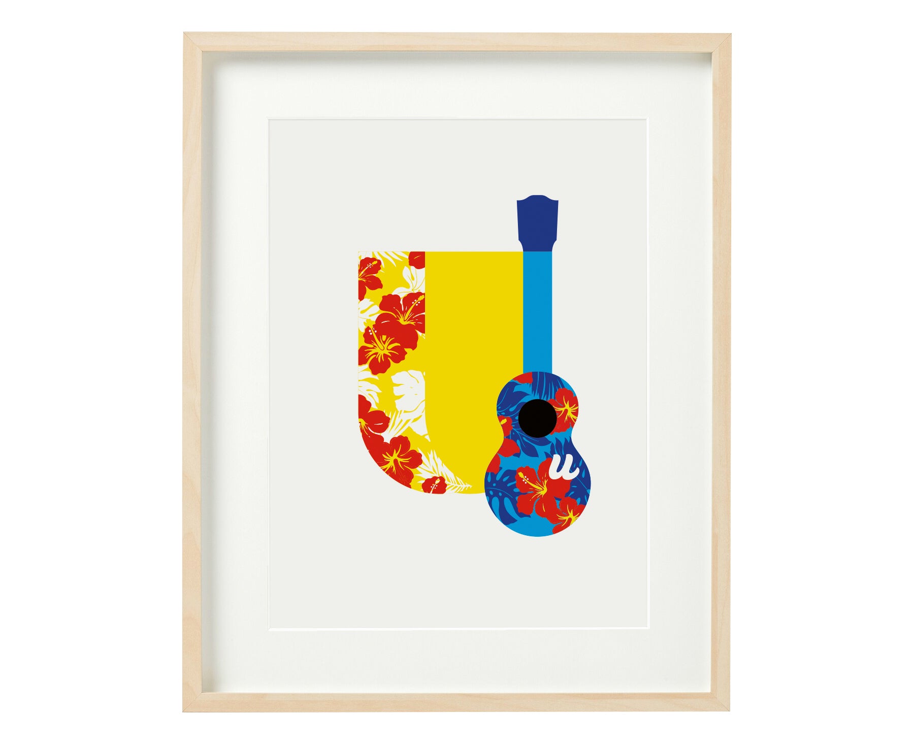 Umberto, Ursula, Una and Uri will now you're not stringing them along with this colourful A3 ukulele print. Supplied as a print ready to frame or paired with one of our beautiful oak poster hangers. All Alphablots art prints are printed within the UK on FSC certified archive-quality paper.