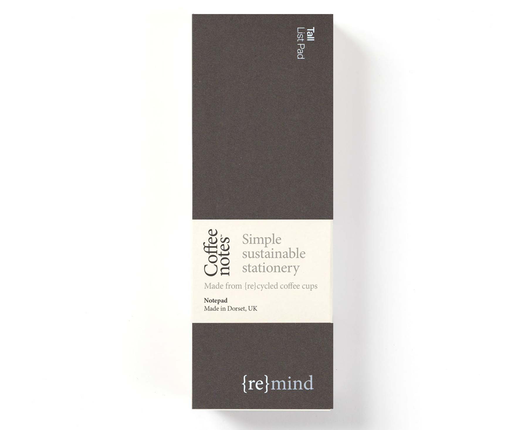 Made from recycled coffee cup paper and repurposed coffee waste. This is a gorgeous tall list pad with 60 tear off pages, each one featuring a lined list with tick boxes and dotted section. It's perfect for shopping lists, to-do list, ideas or any thing else you need to jot down in an elegant tall pad. It's fully recyclable in your household waste or compost.