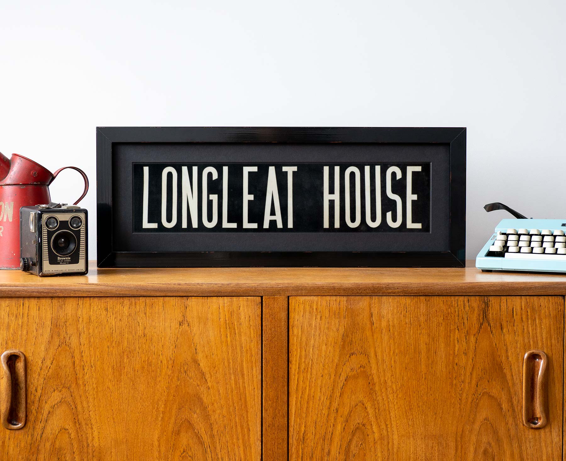 A rare and beautiful thing, this Longleat House bus blind is a genuine original from a 1960s Associated Motorways holiday coach. On a beautiful linen fabric, it has a fantastic patina that proudly shows its age and wear. Mounted in a gorgeous gloss lacquered deep frame, it truly is a stunning piece of British tourism history. Please note, the frame has an intentionally worn appearance as can be seen in the photos, which we enhances the appearance of this beautiful item.