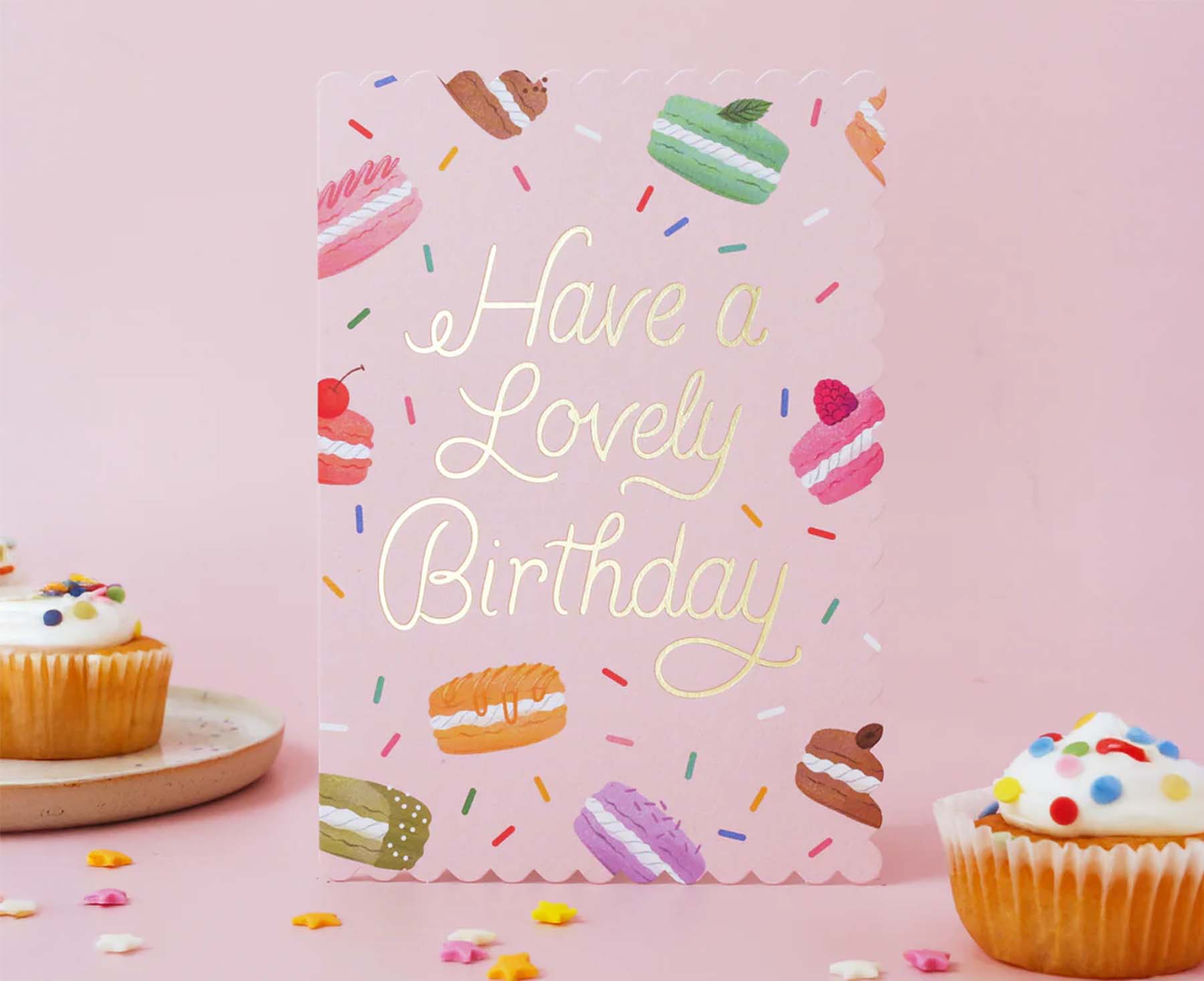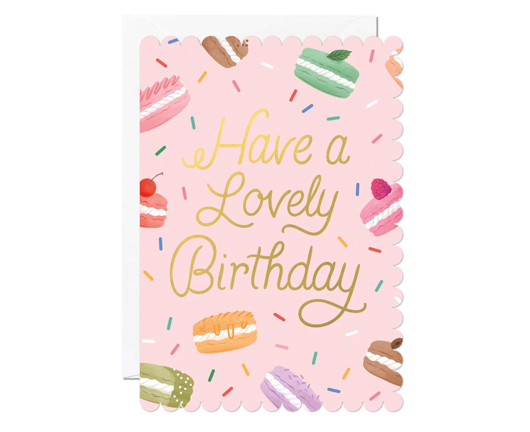Macarons Have a Lovely Birthday Foiled Scalloped Birthday Card