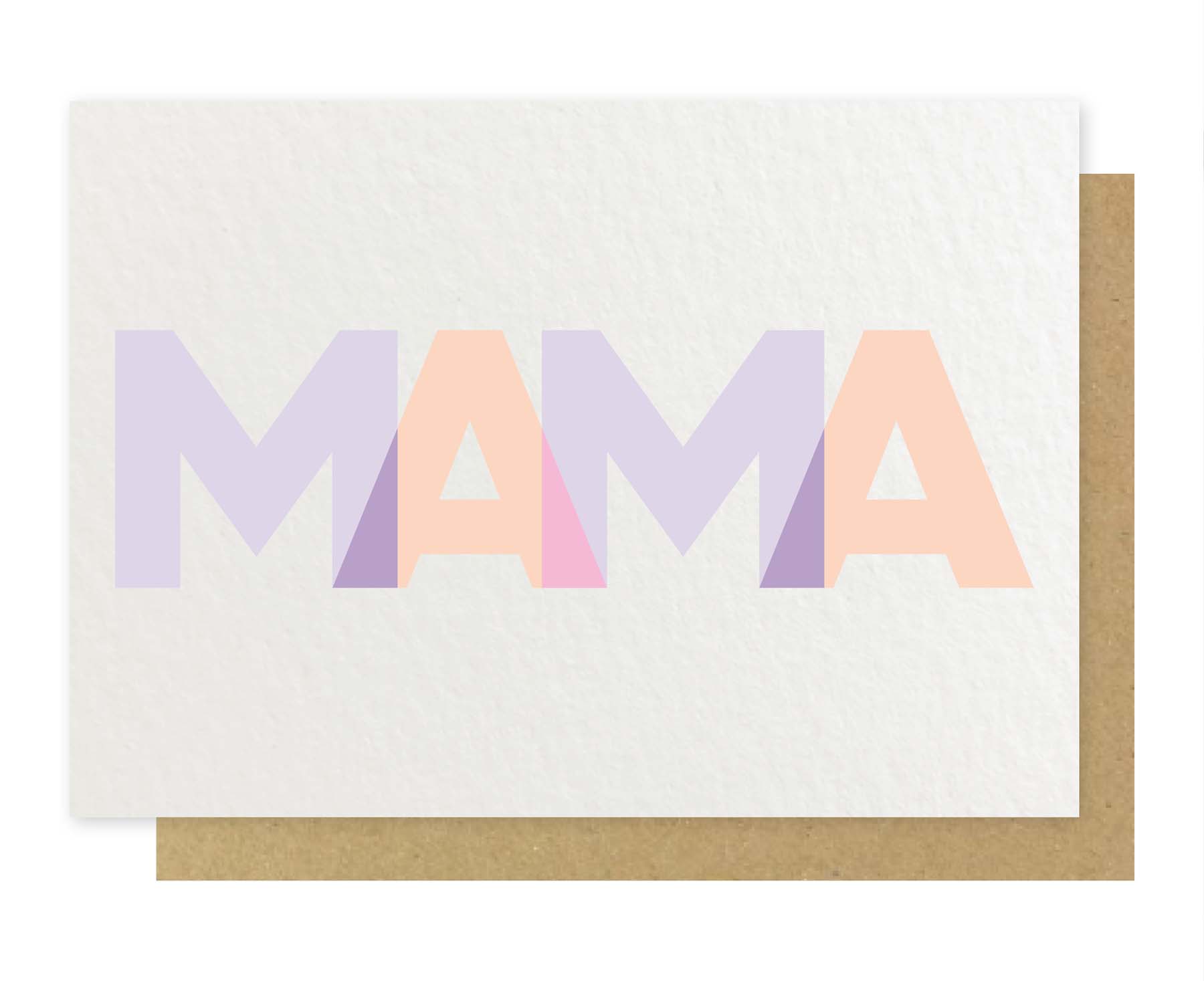 Featuring delicately overlapping letters spelling out Mama, this gorgeous Mothers Day card is beautifully printed by Lucky Ink.