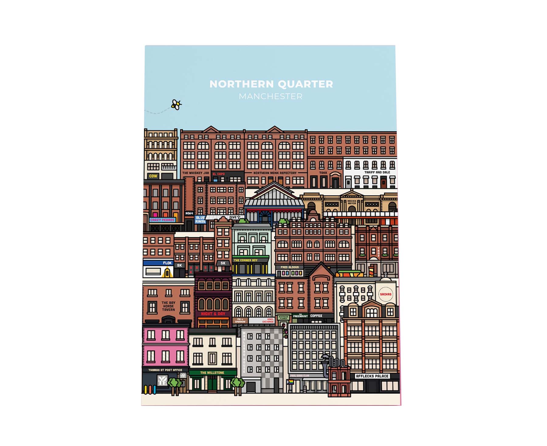 Featuring Hannah Kirkland's graphical and stylish take on the famous sights of Manchester's Northern Quarter, this beautiful print will have you spotting something different every time you look at it.