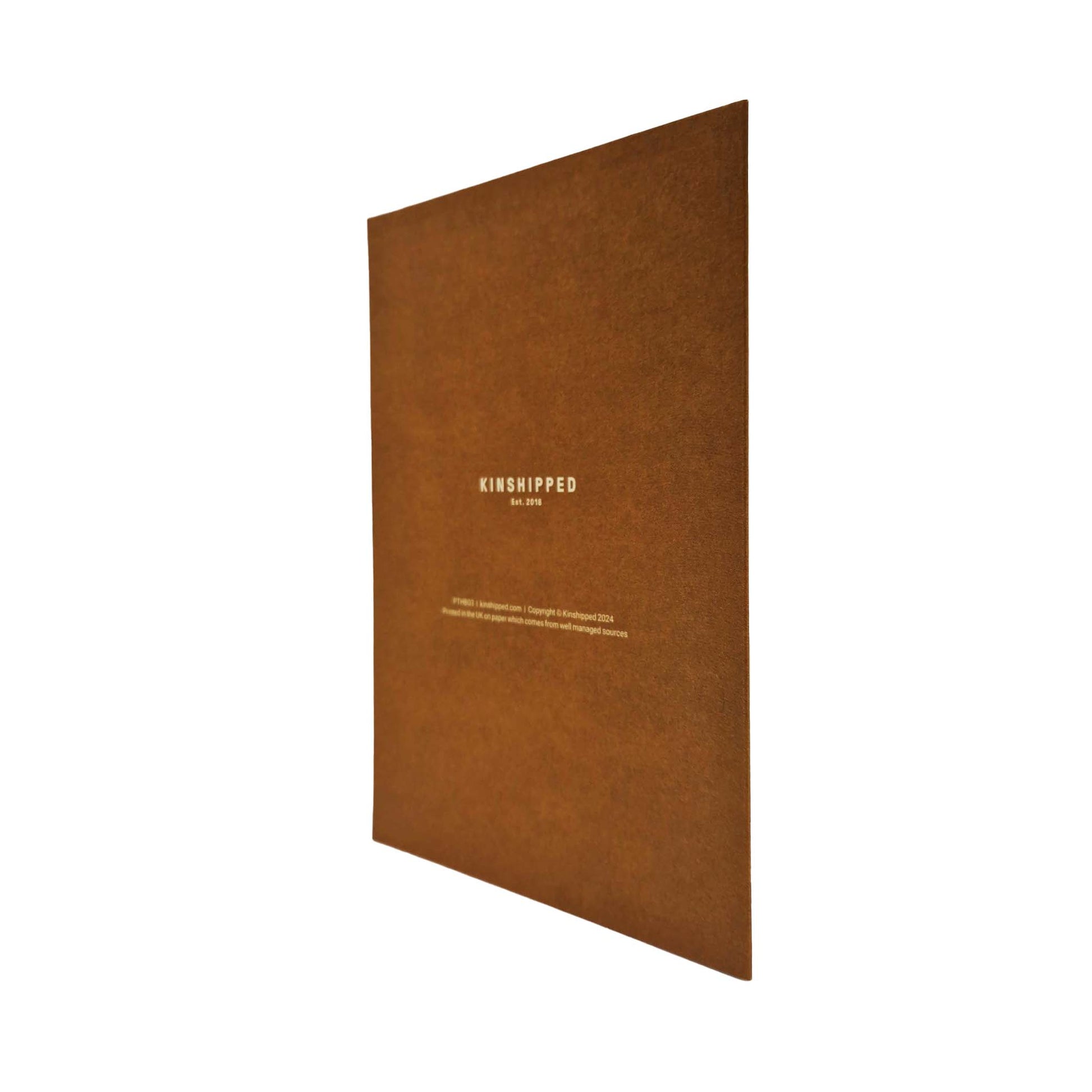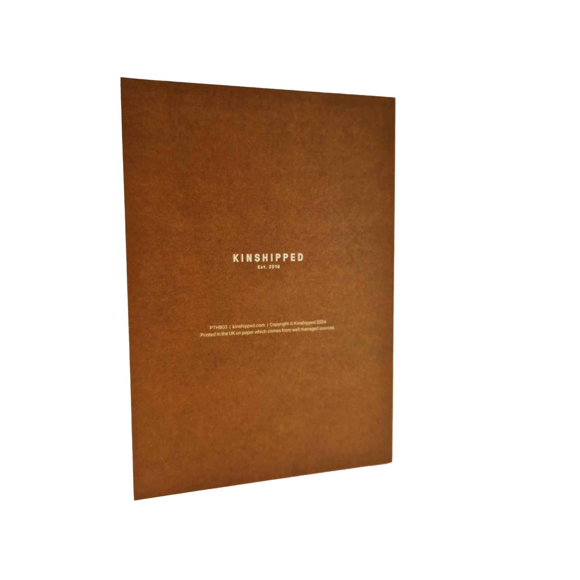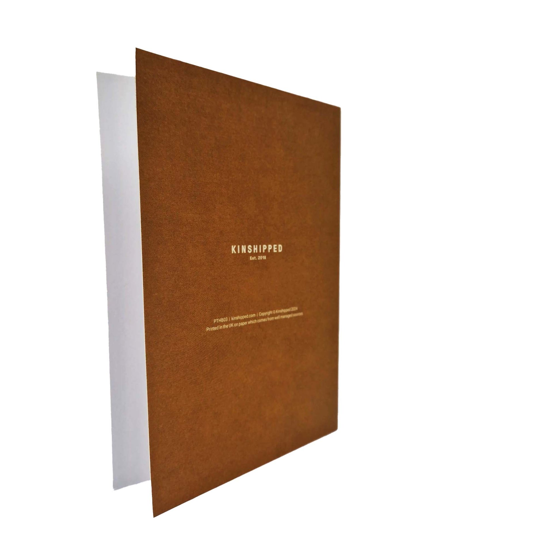 A6 (105mm x 148mm), printed on FSC approved sustainable card with gold foiled text, blank inside, supplied with a luxury charcoal coloured envelope.