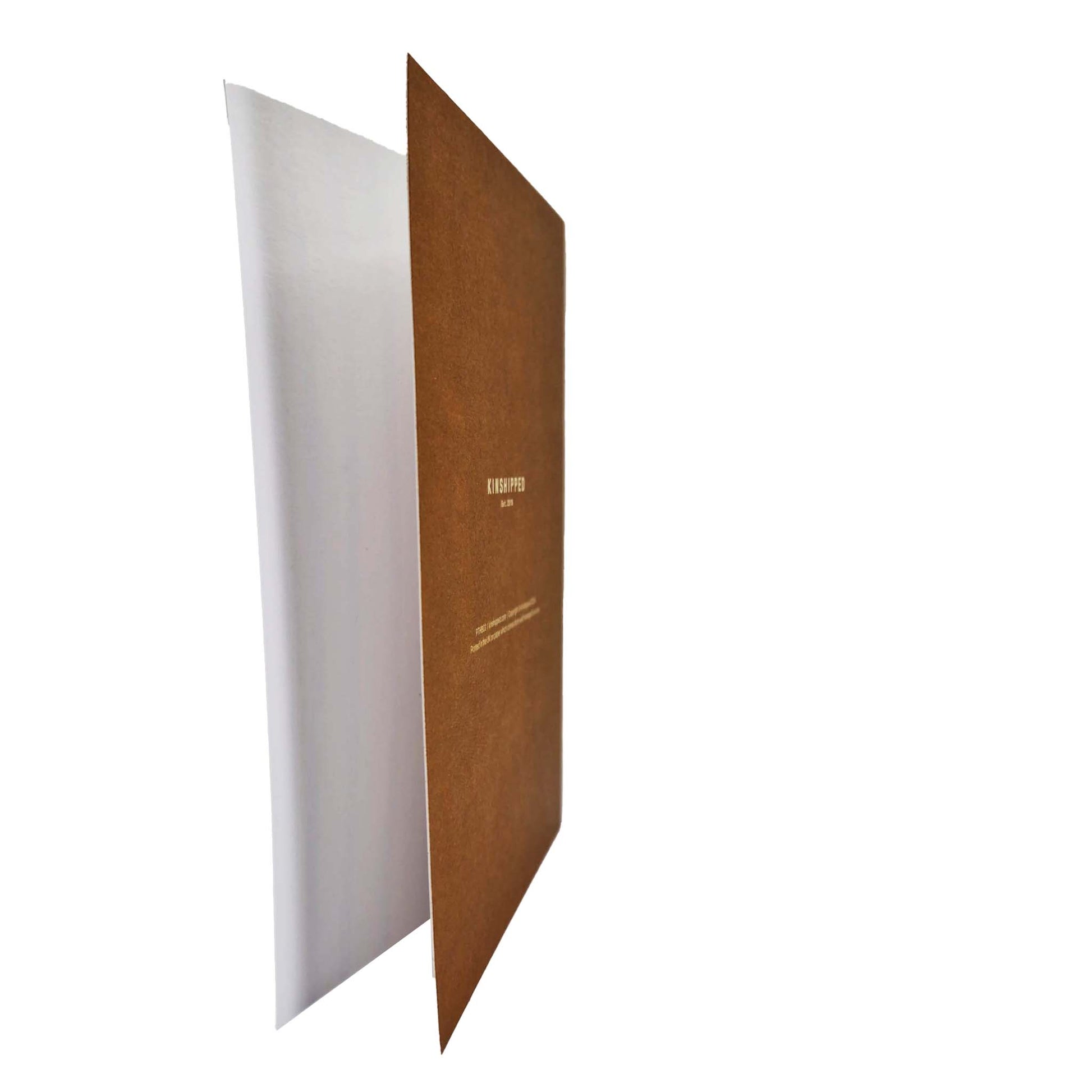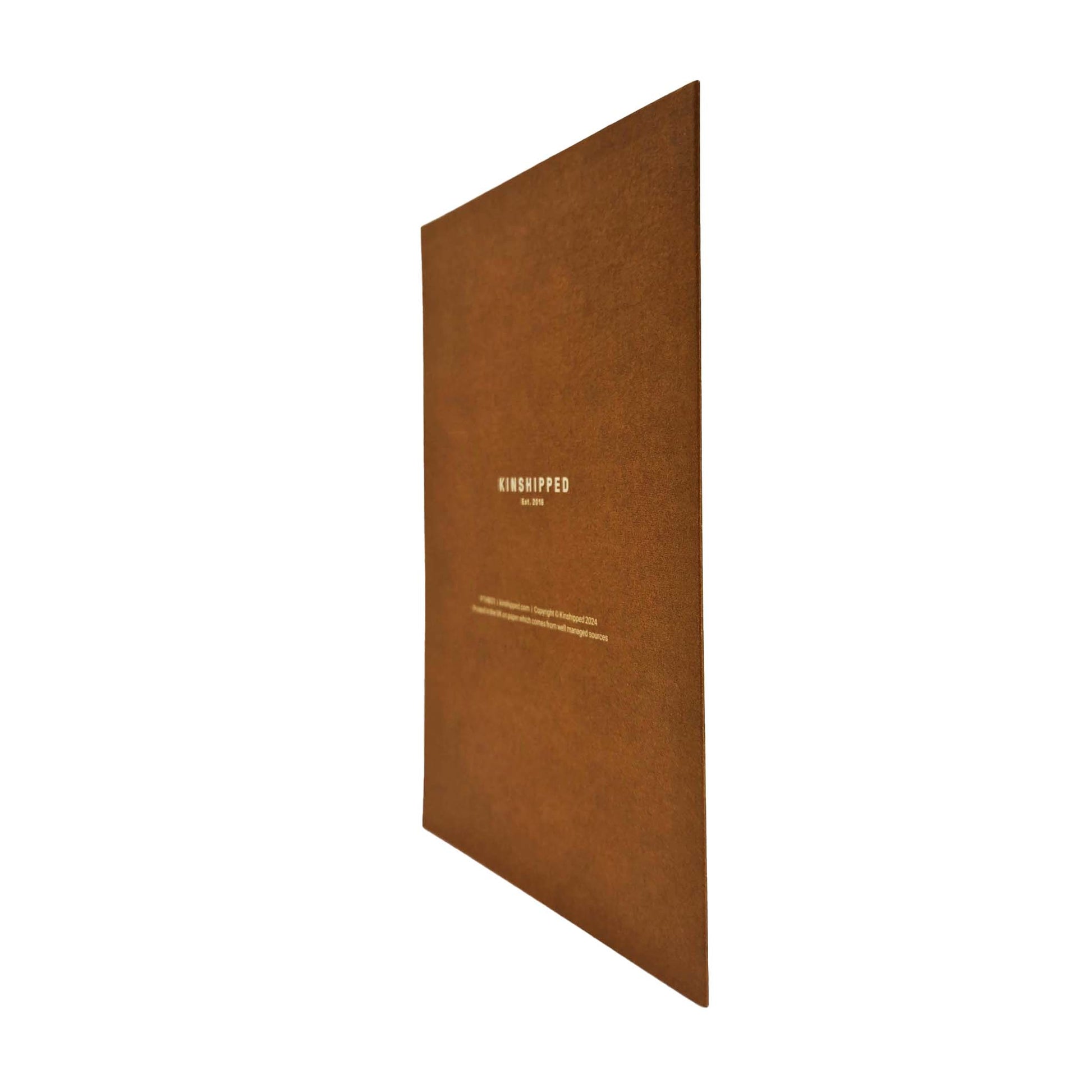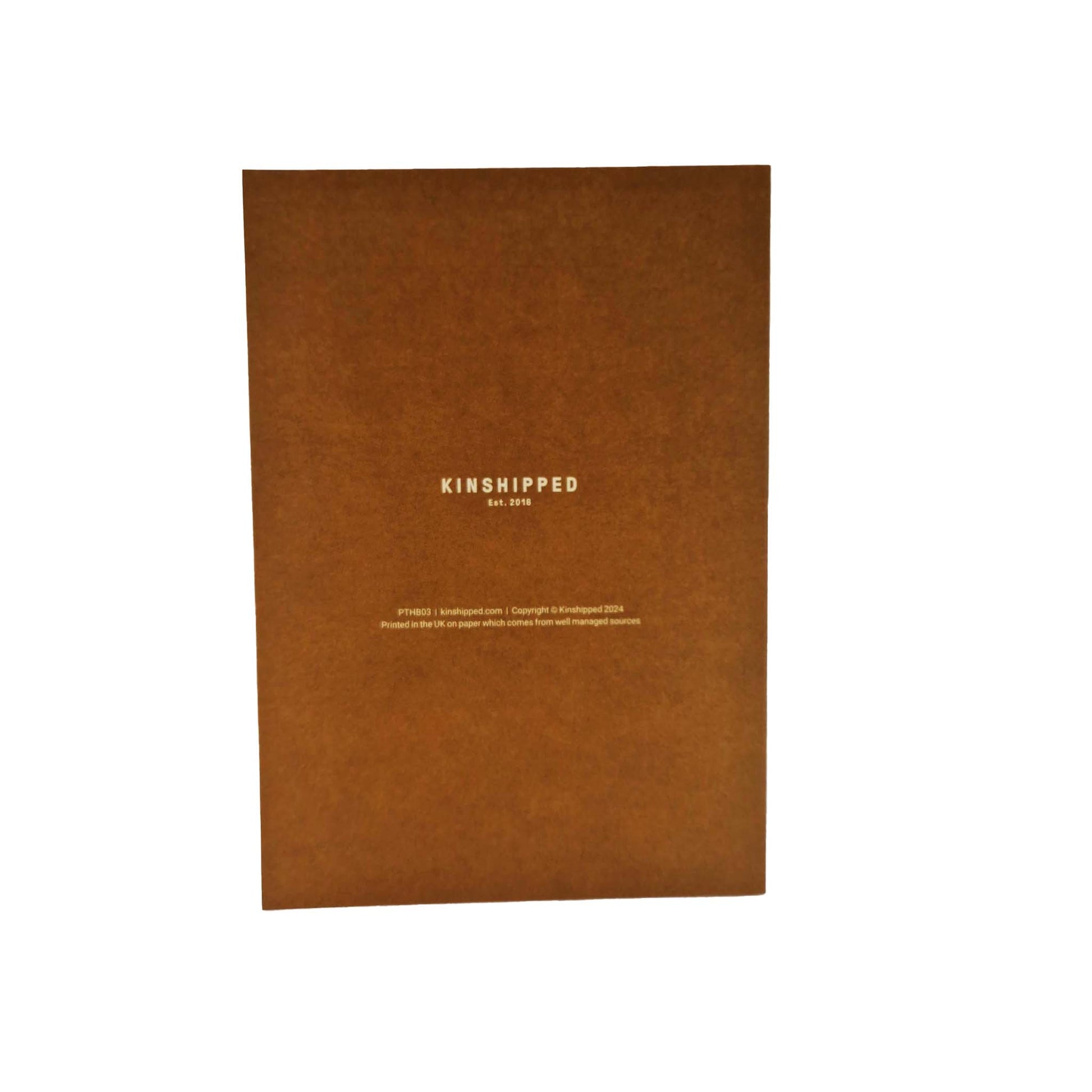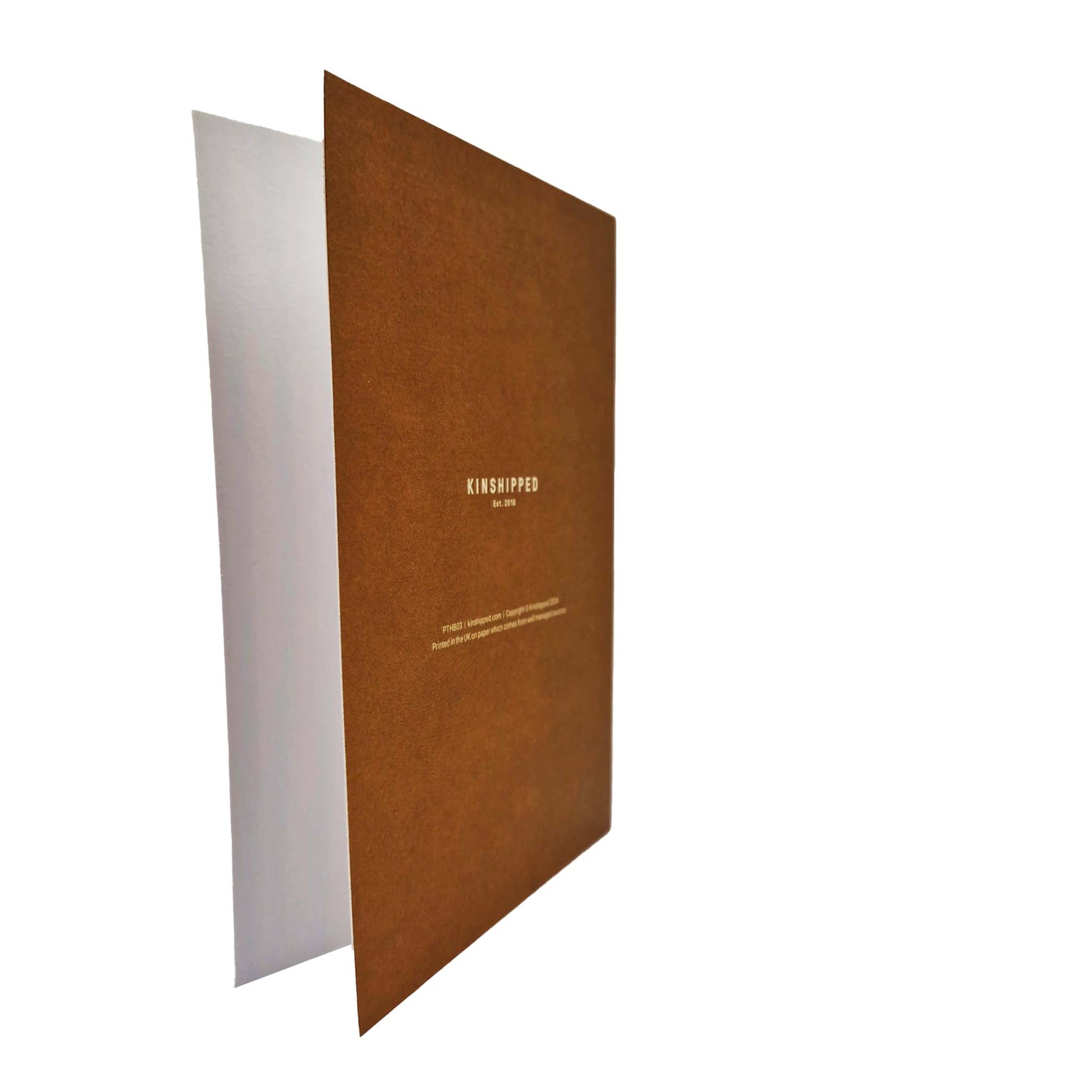 A6 (105mm x 148mm), printed on FSC approved sustainable card with gold foiled text, blank inside, supplied with a luxury charcoal coloured envelope.
