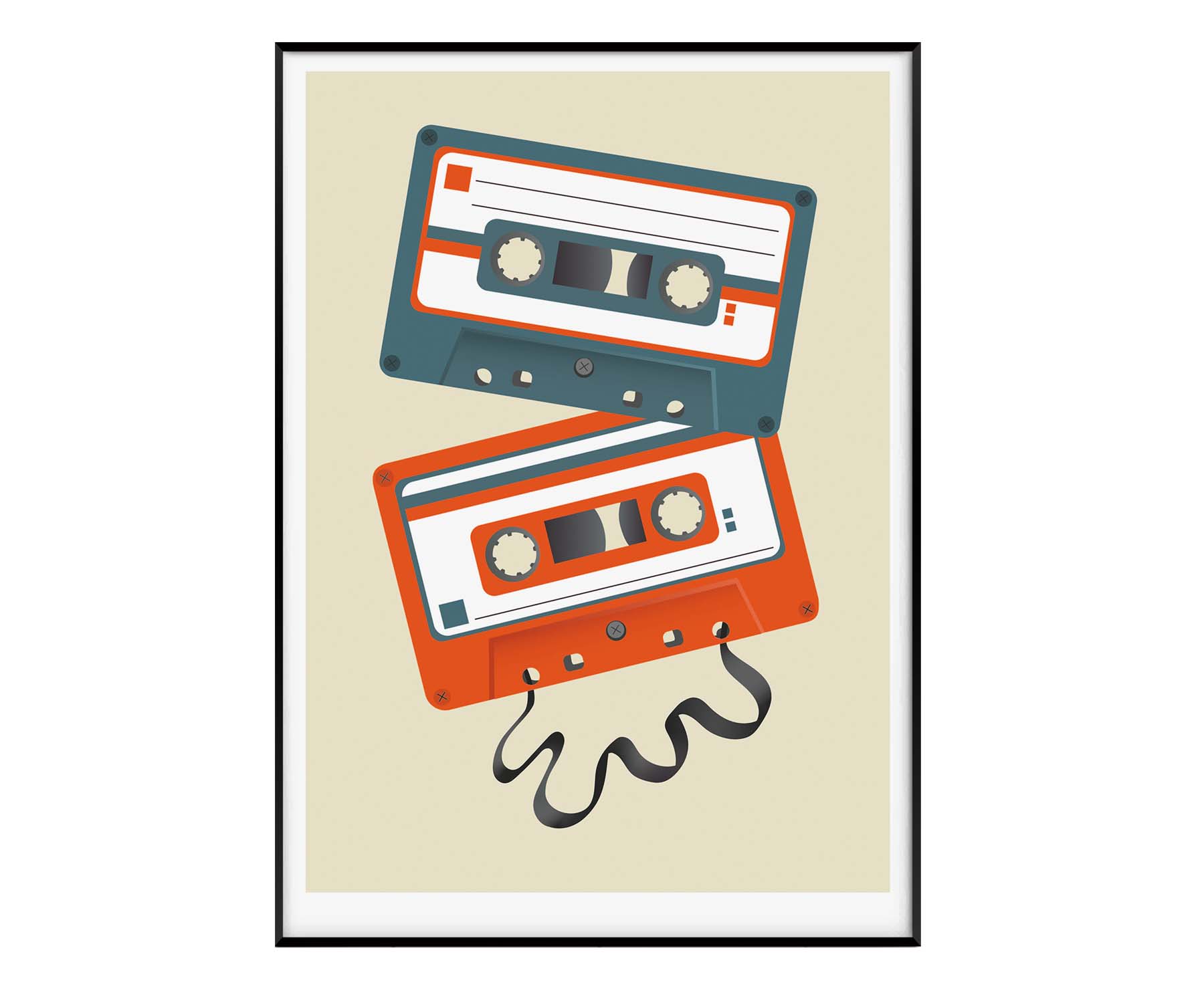 Illustrated by Manchester based pattern designer and illustrator Gail Myerscough in her bold and unique style, this print features a pair of cassettes all ready to be made into mixtapes, an activity that only us of a certain age will remember!