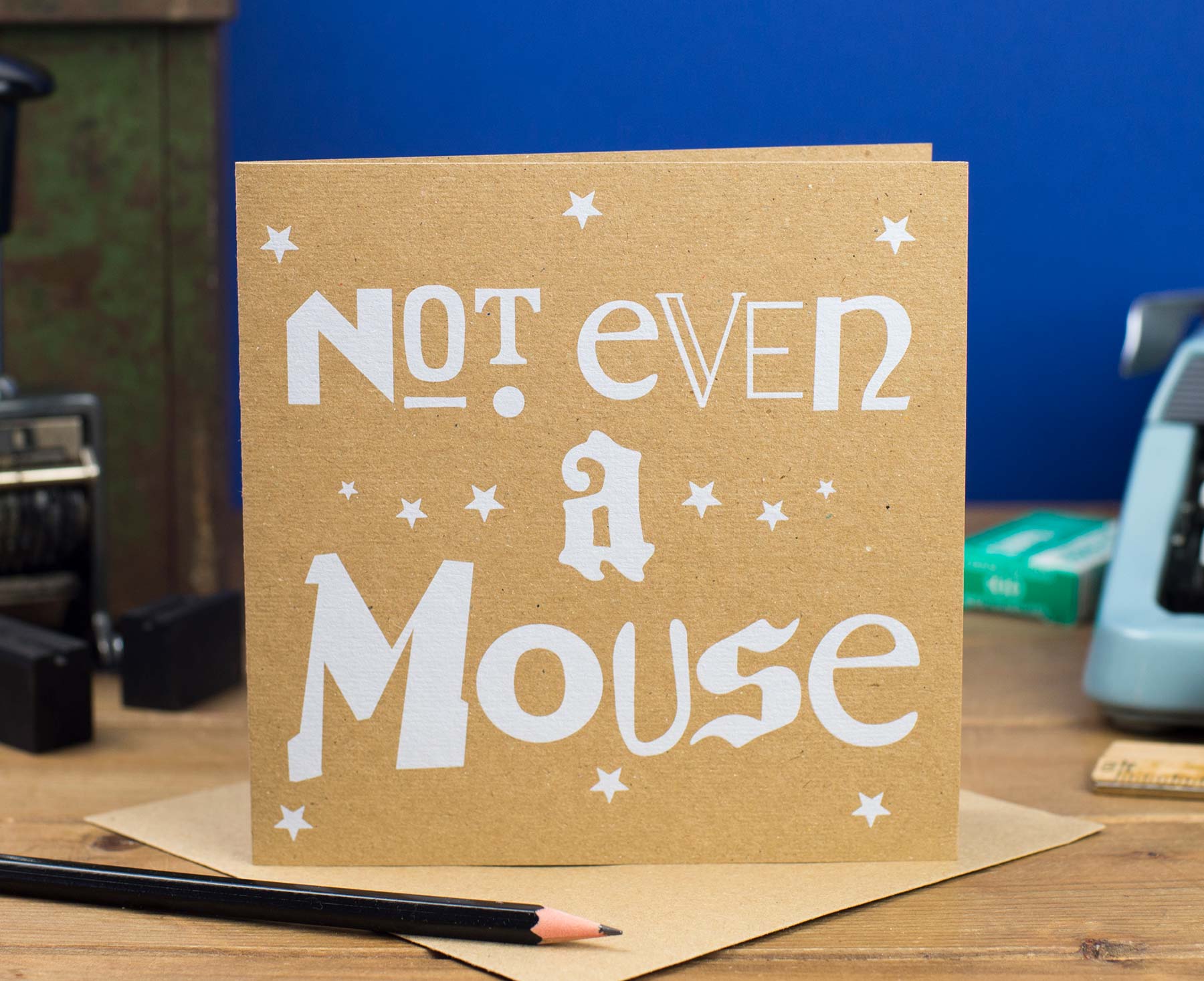 Printed in white ink on recycled kraft brown card, measuring 145cm square and supplied with a co-ordinating envelope.