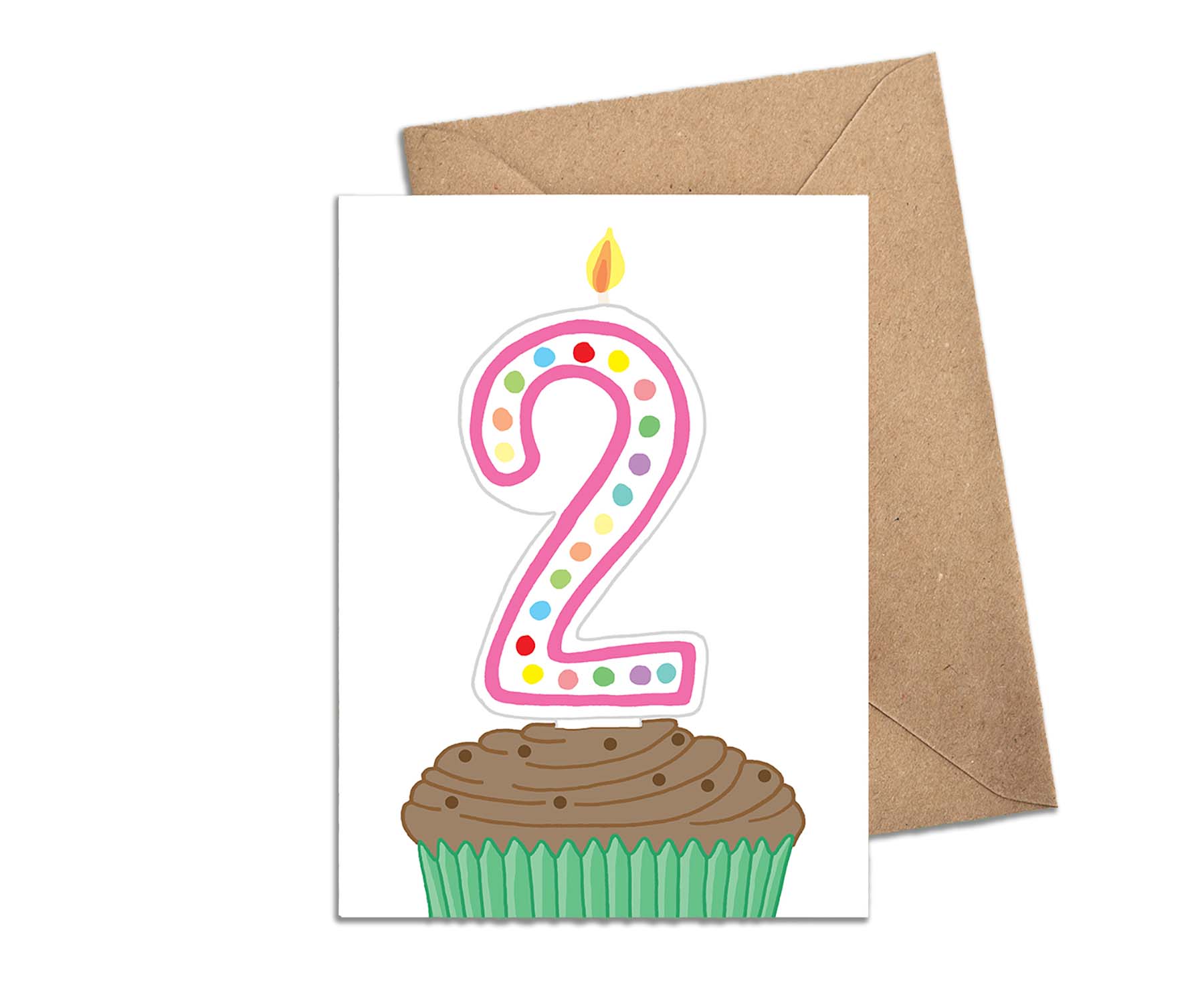 Candles and cupcakes, what more could you want for a child's birthday? This second birthday card, with its charming candle topped cake, is hand drawn by Pembrokeshire based You've Got Pen On Your Face and printed in the UK.