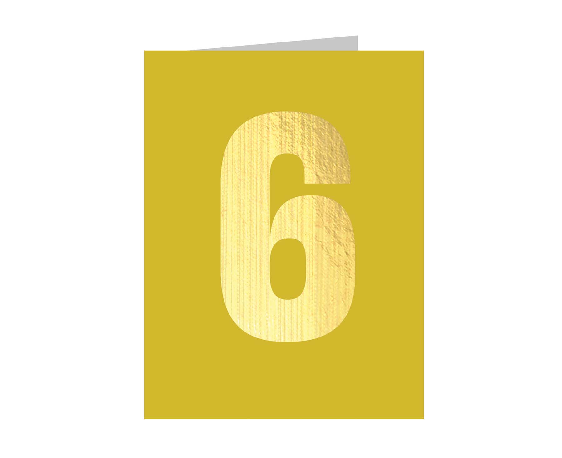 Number 6 Tiddly Gold Number Card Pale Mustard