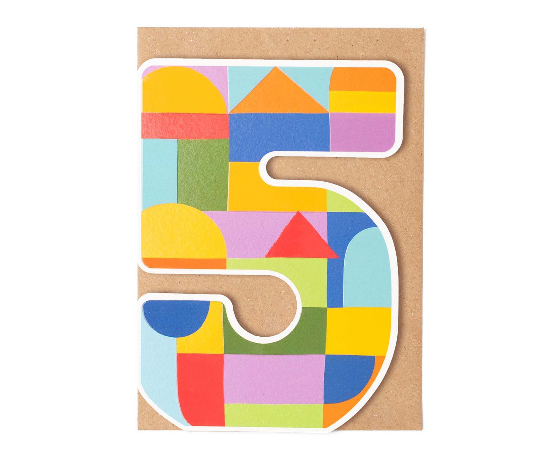 This colourful and fun fifth birthday card from Cath Tate Cards is a little bit different, with its bold design inspired by building blocks, it's cut to shape to create a real standout (or even stand up!) card.