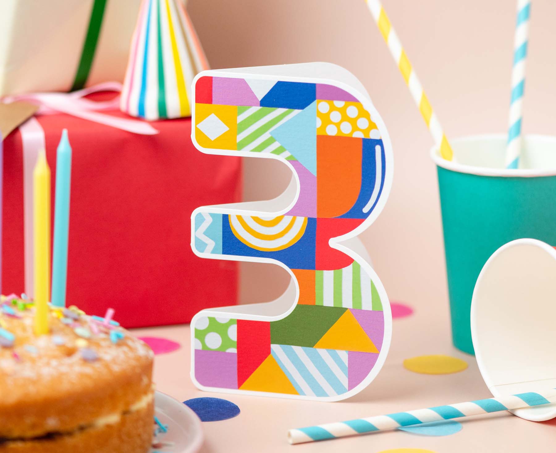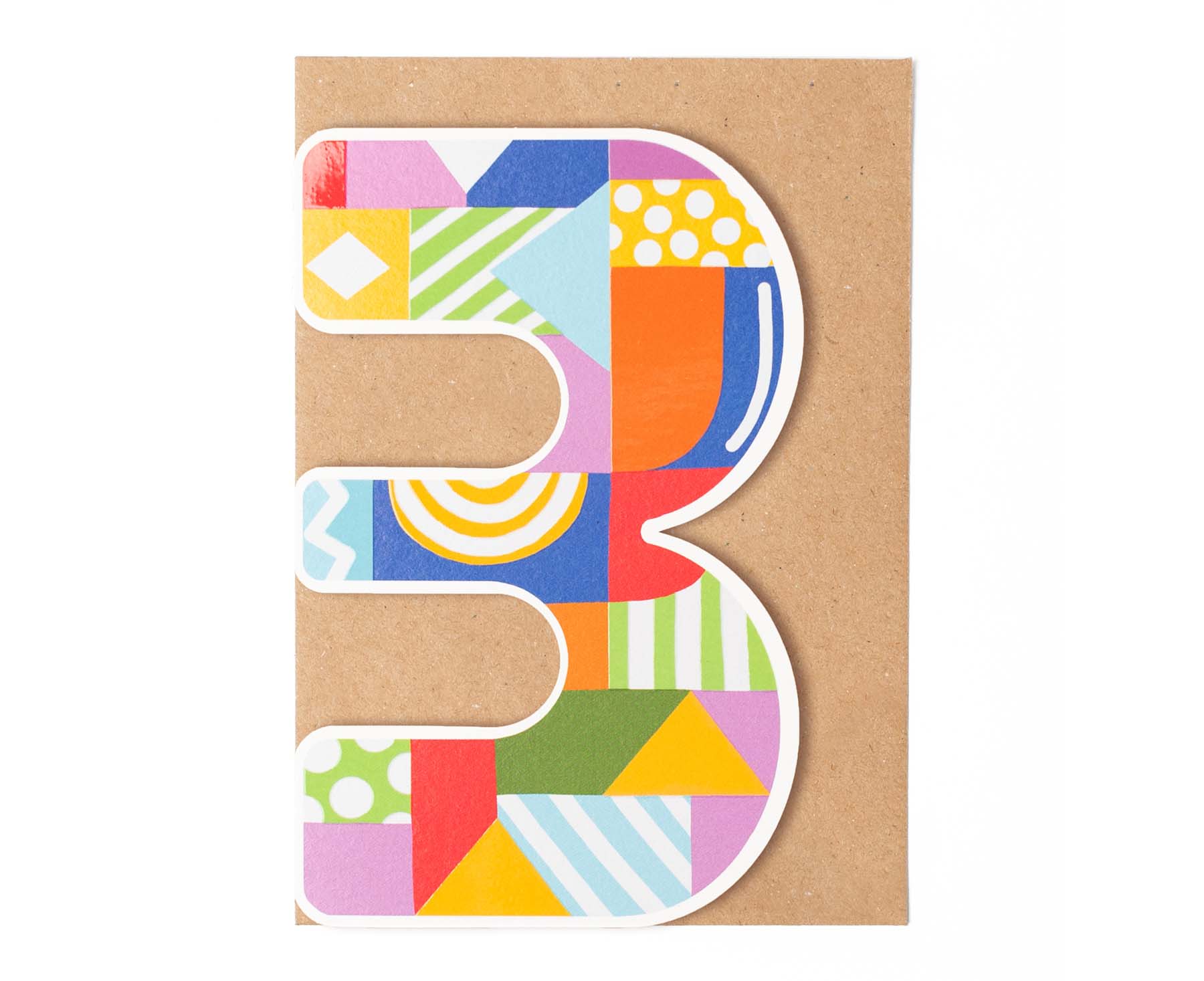 This colourful and fun third birthday card from Cath Tate Cards is a little bit different, with its bold design inspired by building blocks, it's cut to shape to create a real standout (or even stand up!) card.