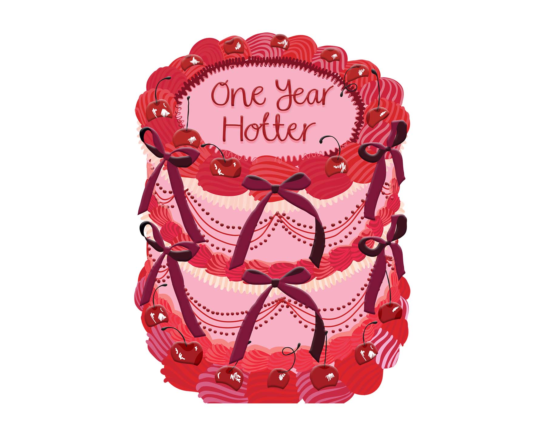 One Year Hotter Spot Varnish Cutout Cake Birthday Card
