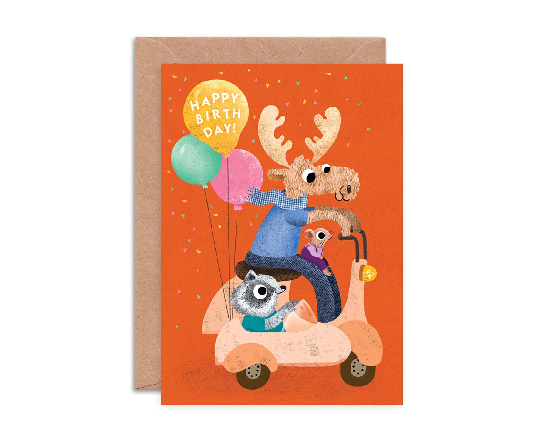Pack of 6 Animals On The Move Kids Birthday Cards