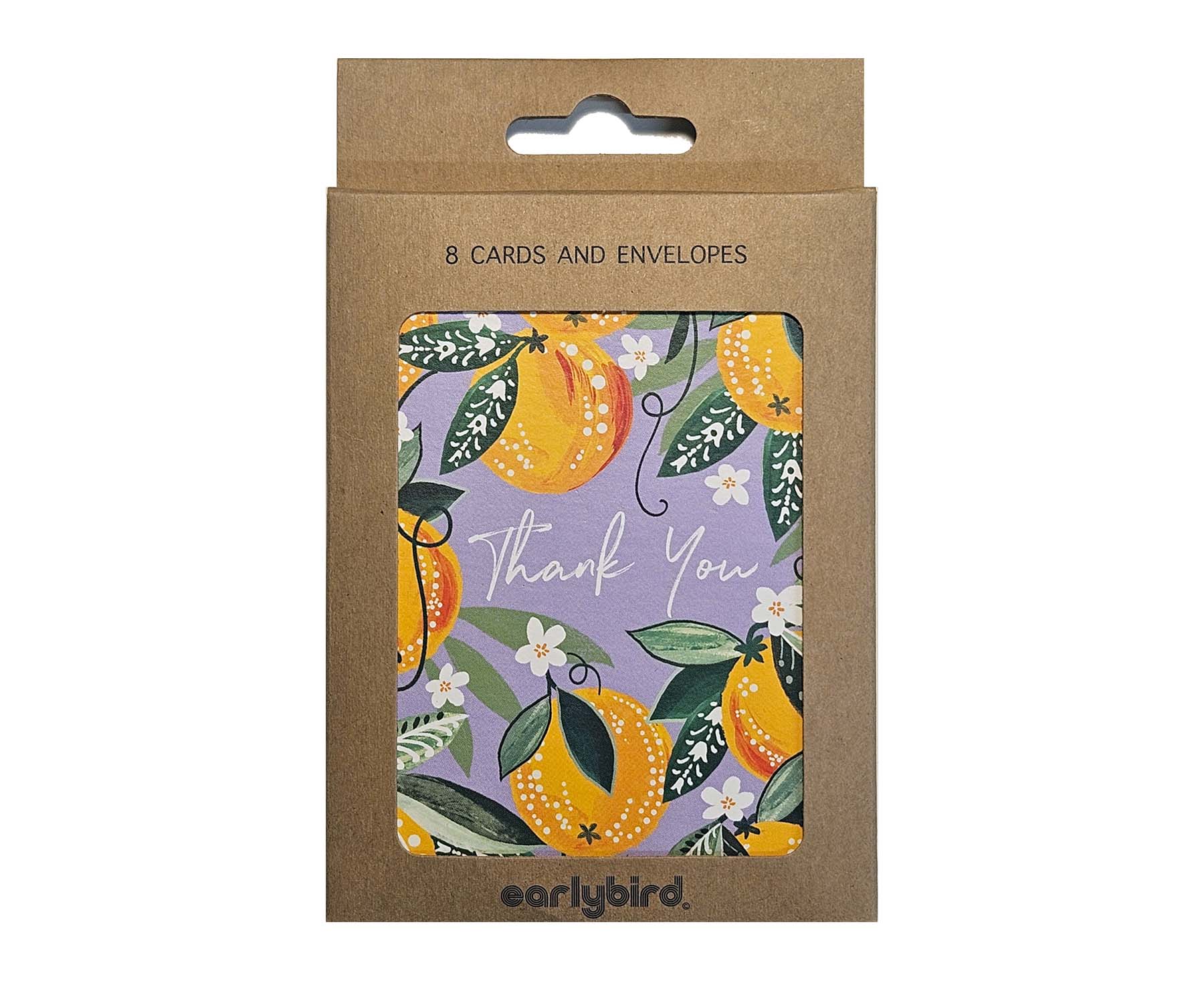 You'll always be prepared with this pack of 8 cute little thank you cards and envelopes. They're from Earlybird's Mediterranean inspired range of cards and feature juicy looking oranges, flowers and foliage.