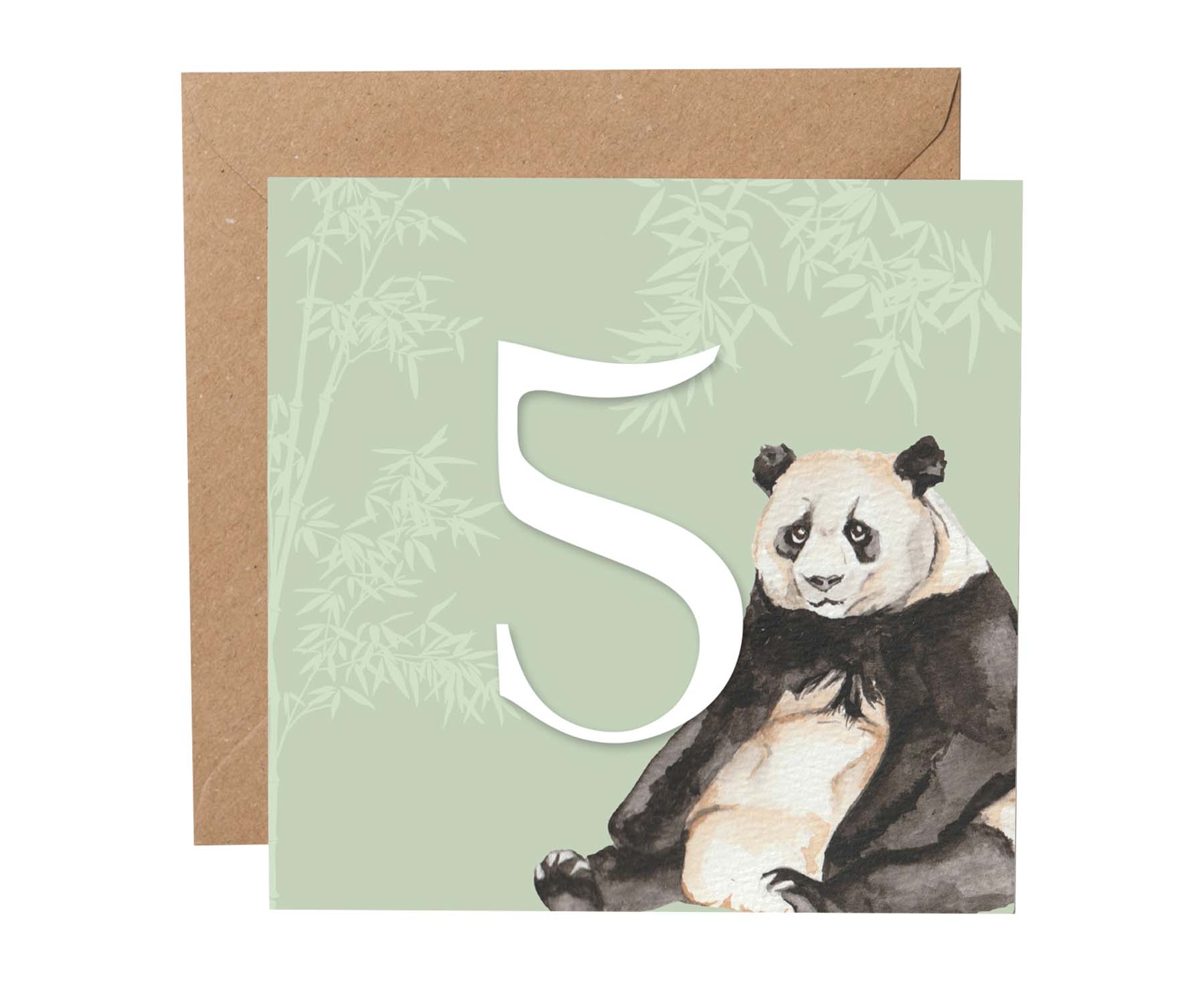 This cute fifth birthday card features a beautiful relaxed panda and a number five. It's based on an original watercolour painting by talented Sussex based artist Georgi, otherwise known as lil wabbit.