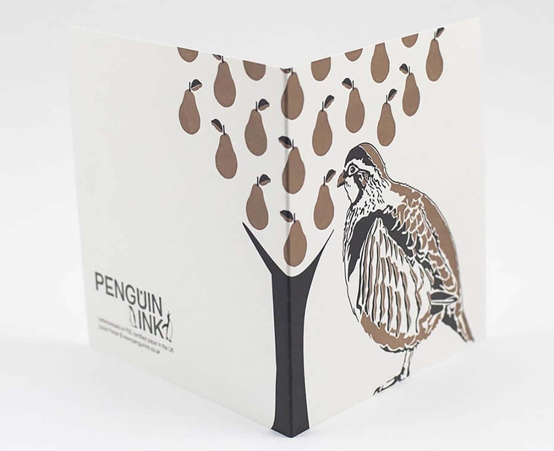 This festive bird appears to have not got the memo and is a partridge next to a pear tree rather than a partridge in a pear tree, but it makes for a beautiful Christmas card all the same! All Penguin Ink cards are Letterpress printed in England using a traditional Heidelberg press, giving them a tactile embossed finish on a thick textured card stock.
