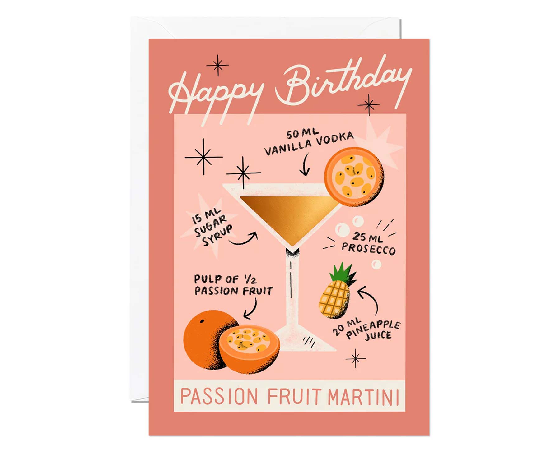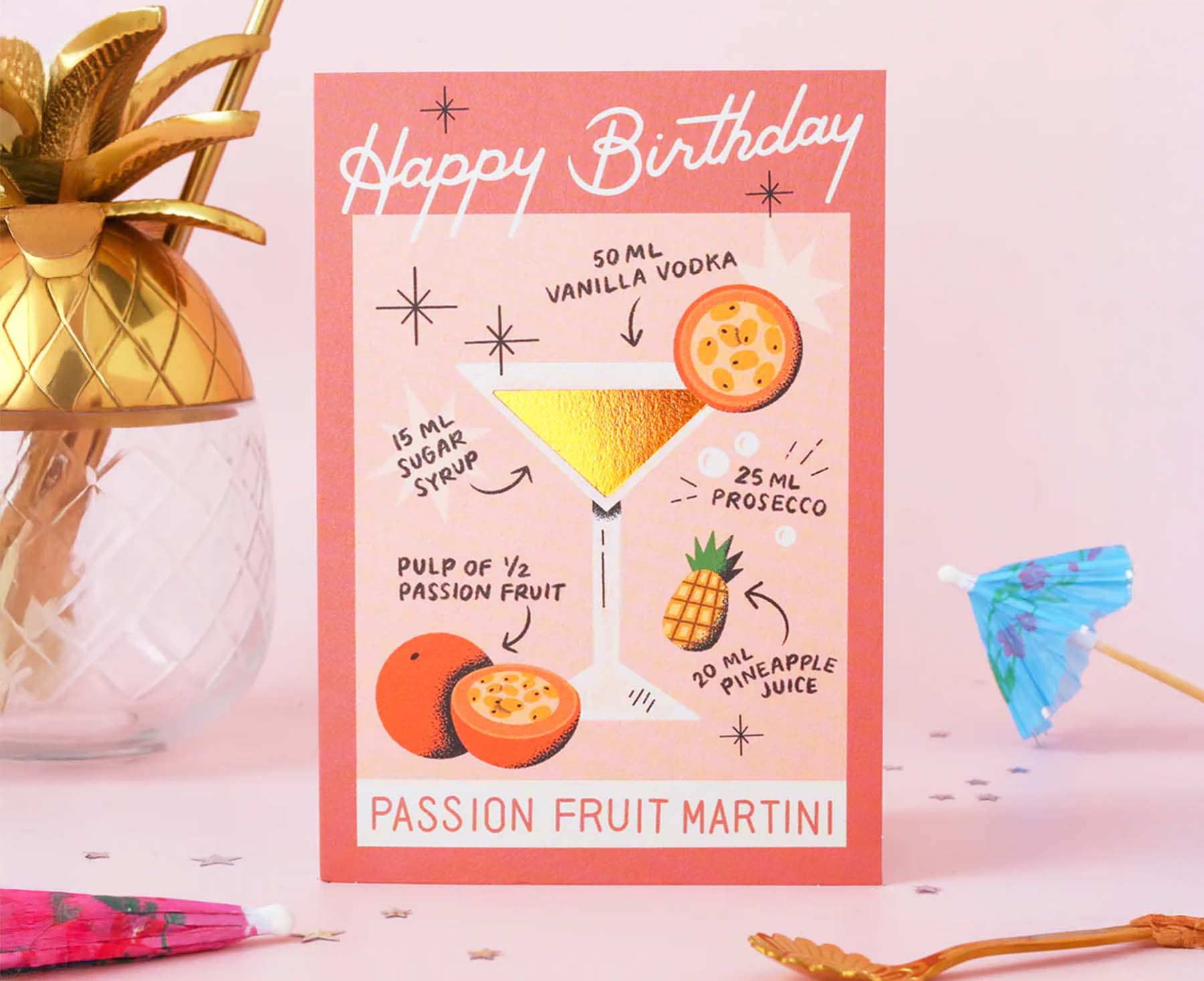 Passion Fruit Martini Cocktail Foiled Birthday Card