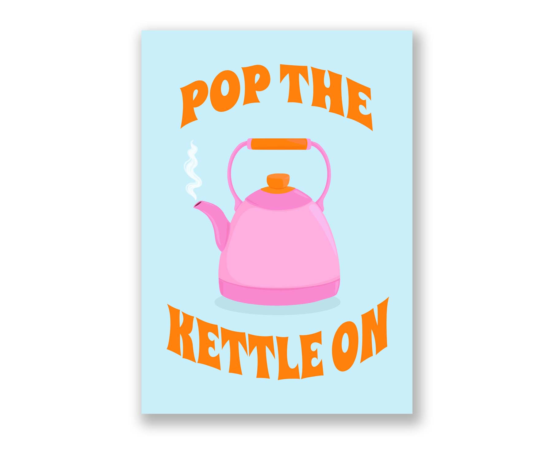 Part of Laura's Northern Kitchen range, this colourful print features that popular request heard in many a kitchen to pop the kettle on. With its strong typography, bold colours and playful illustration, this would look great in your kitchen, dining room or indeed on the wall of any room in your home!
