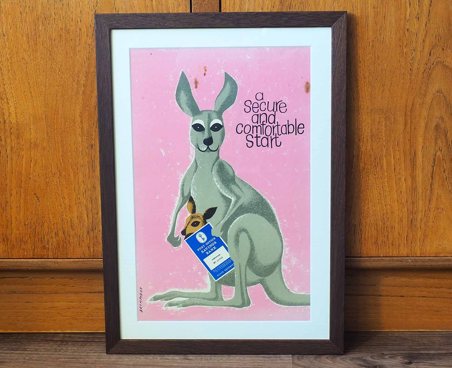 Post Office Kangaroo Framed 1960s Vintage Promotional Card