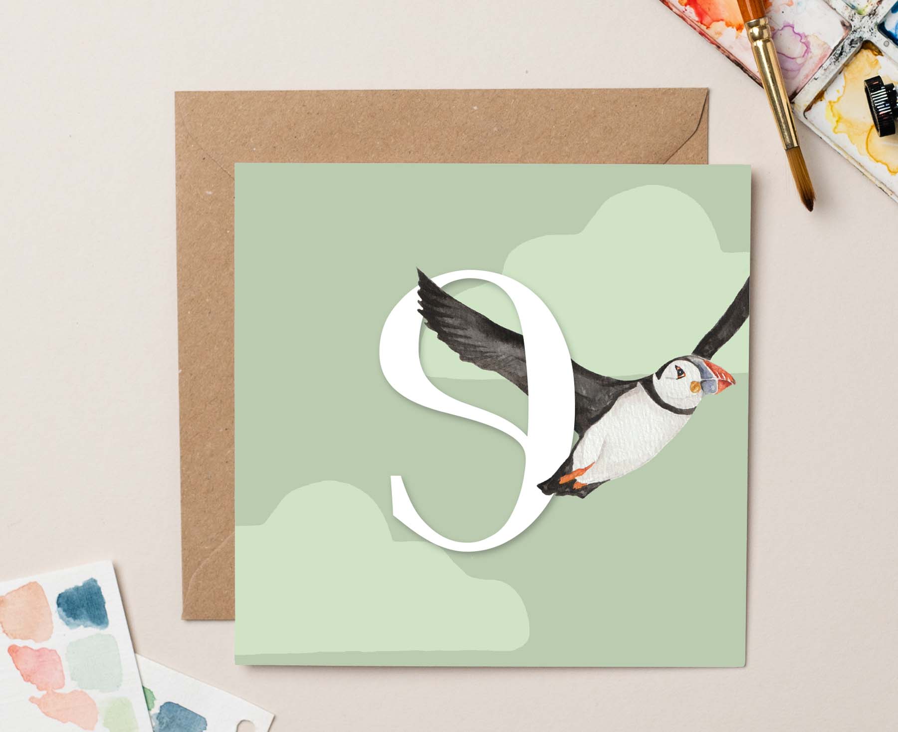 This gorgeous ninth birthday card features a beautiful puffin flying past a number nine. It's based on an original watercolour painting by talented Sussex based artist Georgi, otherwise known as lil wabbit.