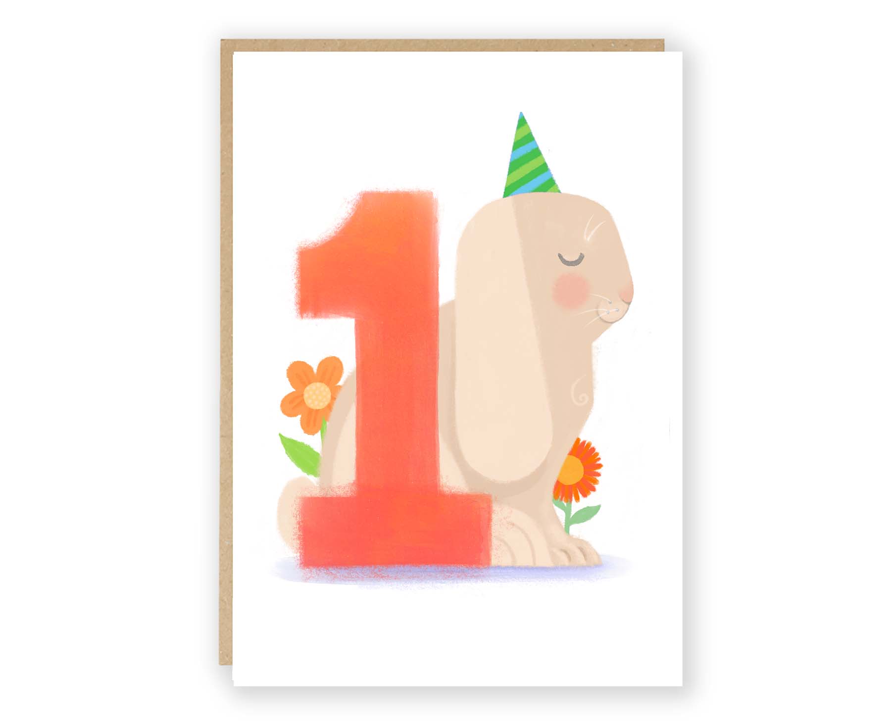 Part of a range of cards designed by Jade Fisher's brother Adam, this beautifully illustrated bunny rabbit first birthday card will be loved by every one year old!