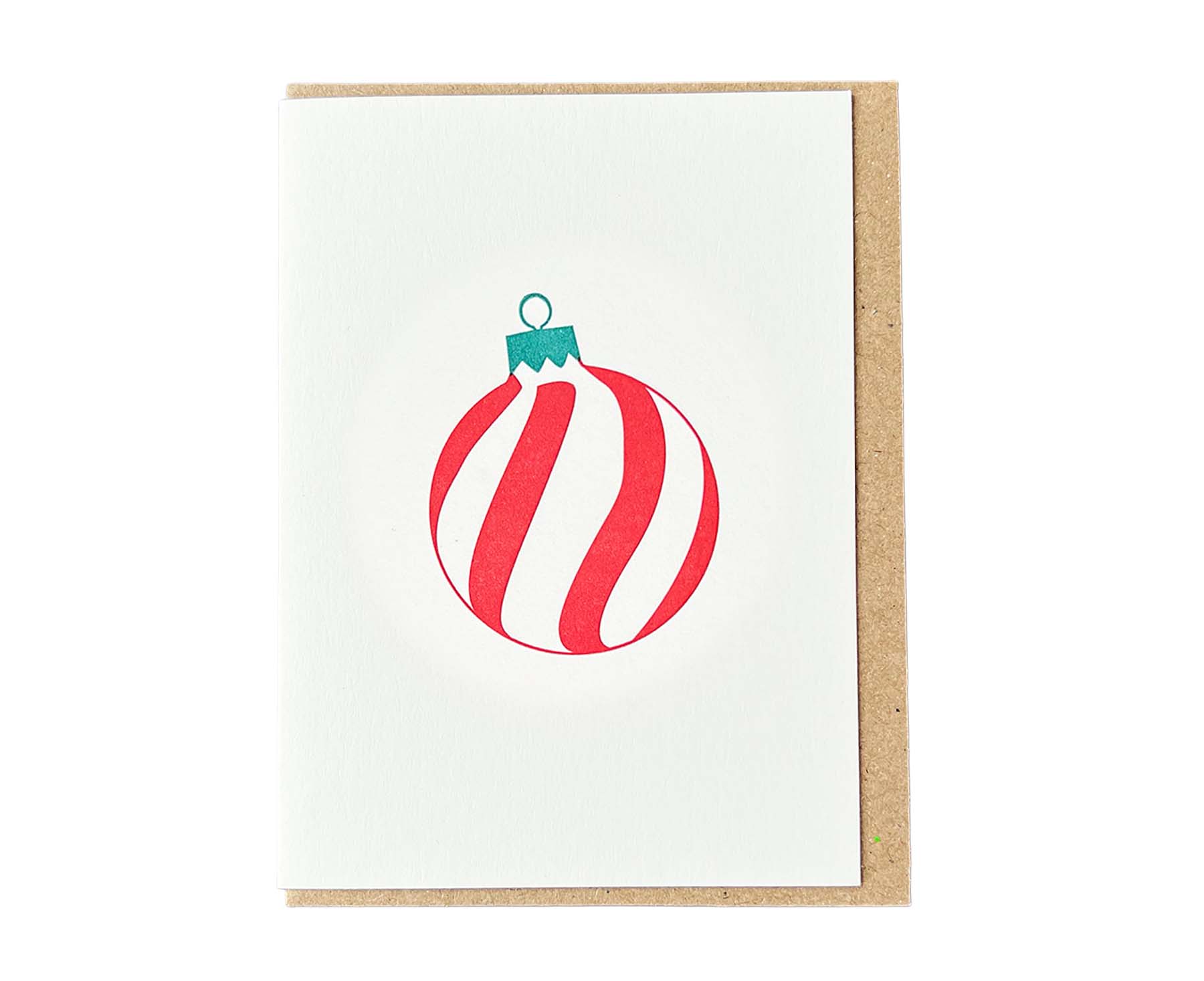 Red & Green Spiral Bauble Mini Letterpress Christmas card