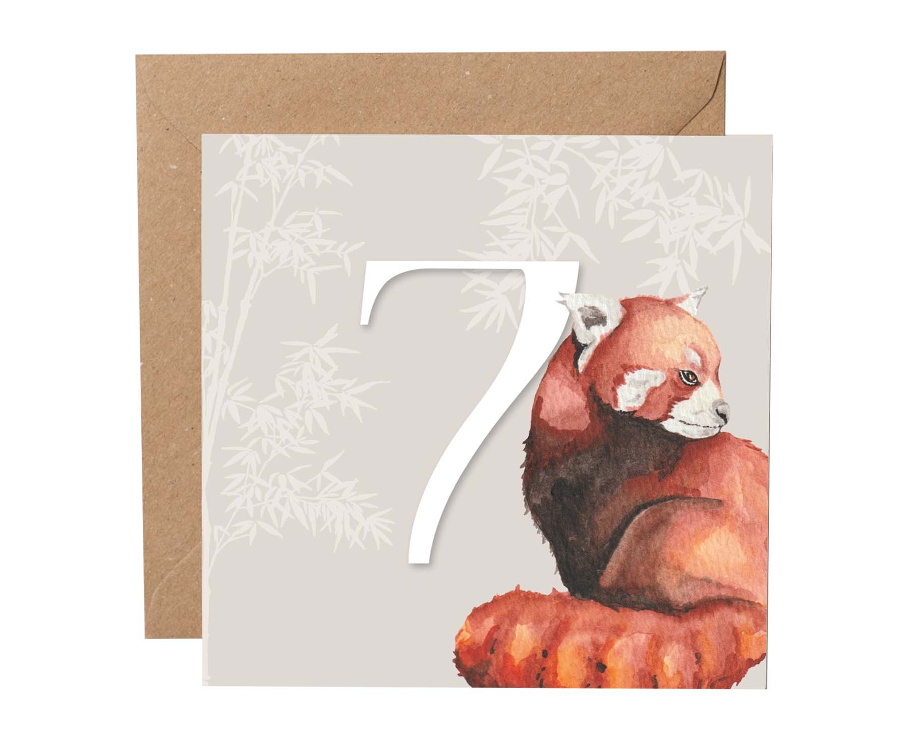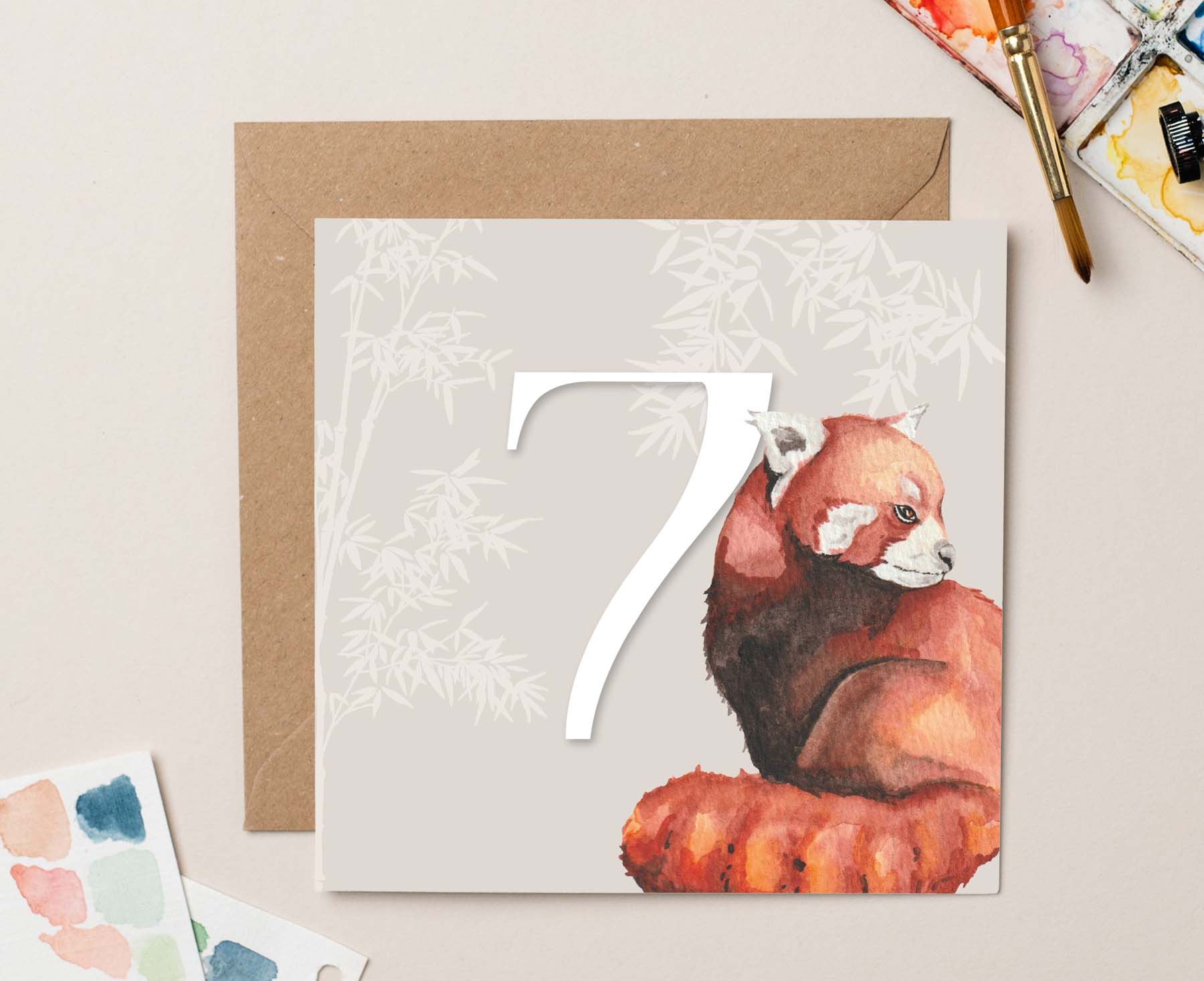 This gorgeous seventh birthday card features a beautiful red panda and a number seven. It's based on an original watercolour painting by talented Sussex based artist Georgi, otherwise known as lil wabbit.