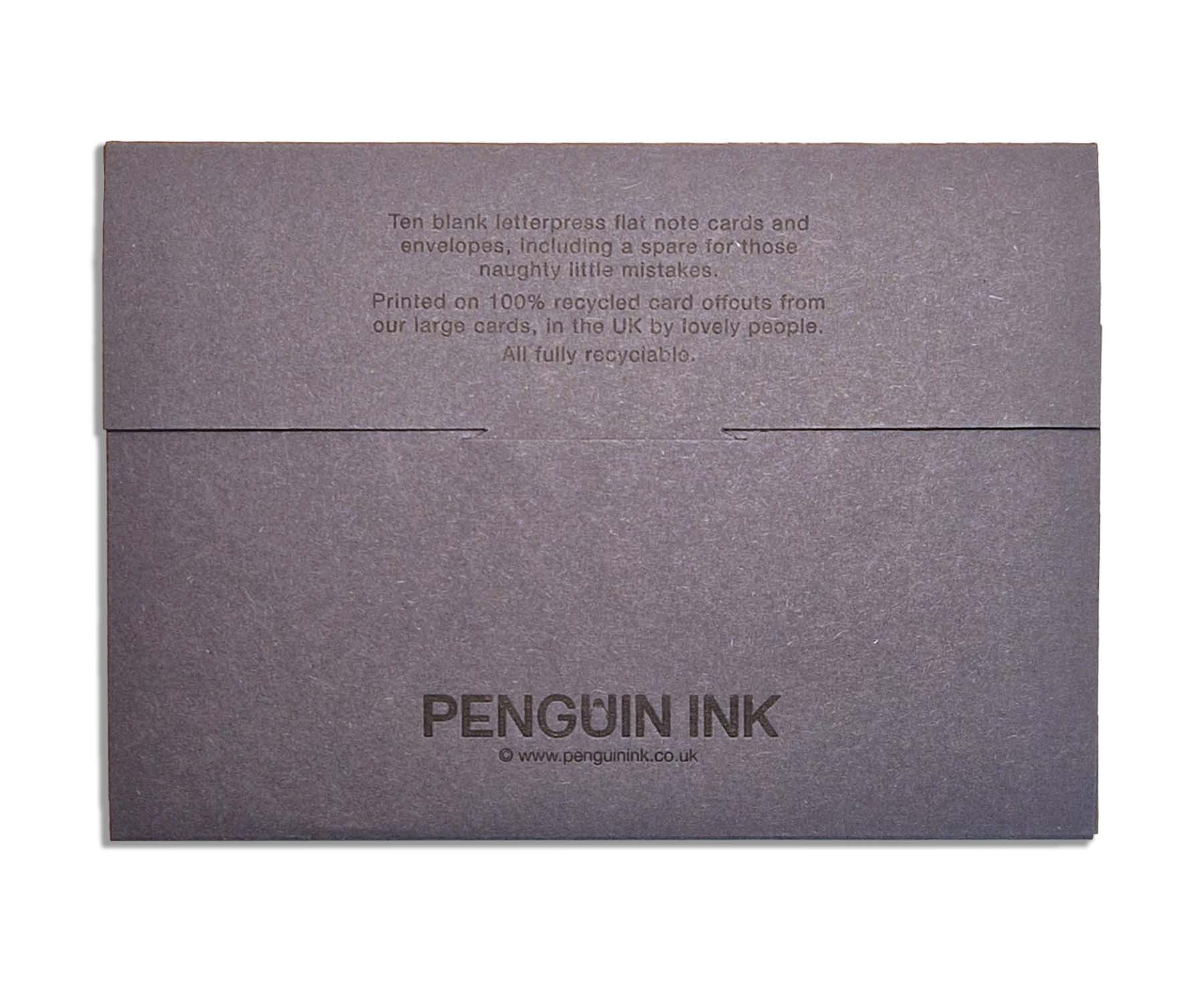This is set of 10 notelet / correspondence cards featuring the cutest little cockapoo to accompany your writing. Supplied with 11 envelopes so there's a spare in case of mistakes! All Penguin Ink cards are Letterpress printed in England using a traditional Heidelberg press, giving them a tactile embossed finish on a thick textured card stock.