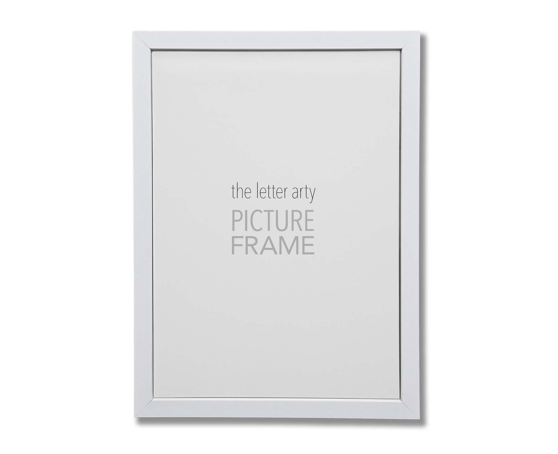 Solid wood frame in a smooth white finish 22mm wide and 22mm deep. Supplied ready to hang with crystal clear perspex and an MDF backing board. Available in A3 (297mm x 420mm) and A4 (210mm x 297mm) sizes.