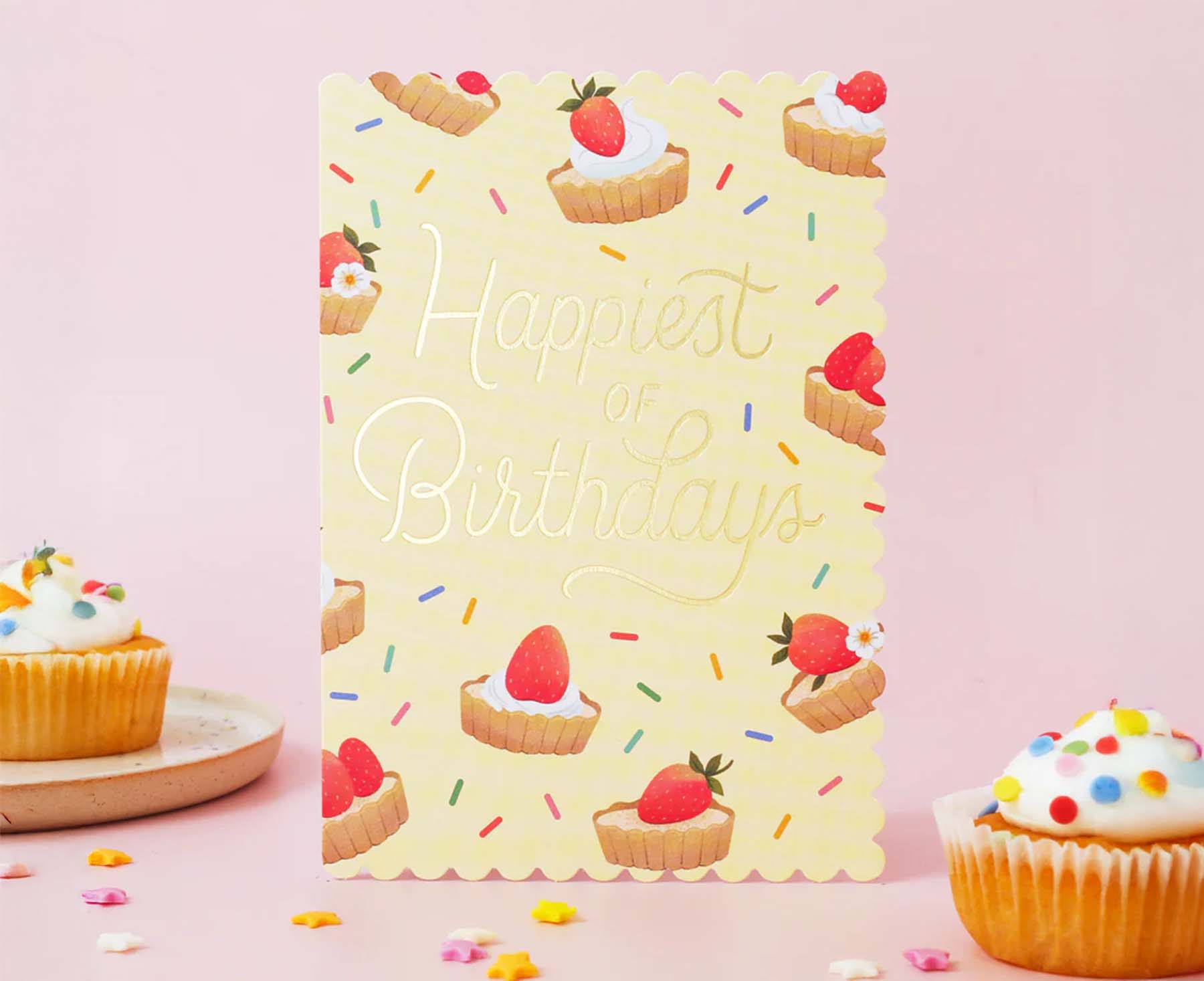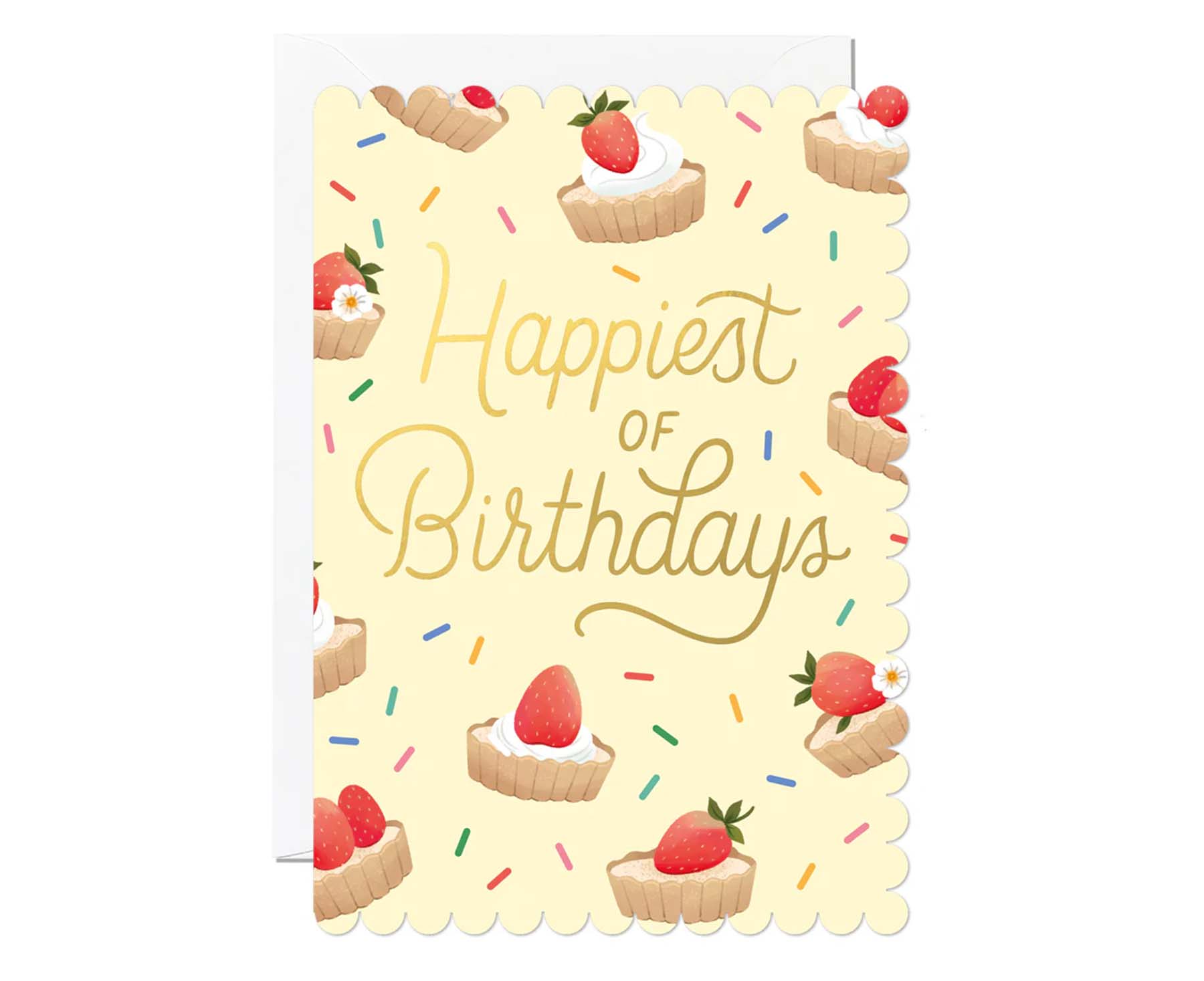 Strawberry Tart Happiest of Birthdays Foiled Scalloped Birthday Card