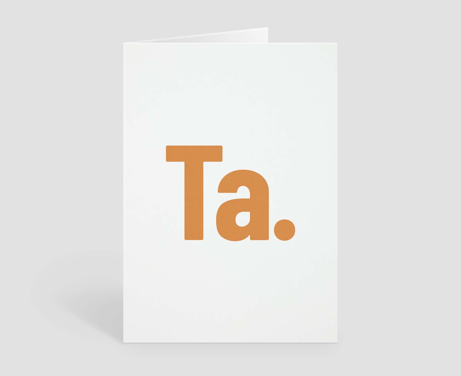 With its beautiful bold typography - Ta - printed in gorgeous earthy tones, this thank you card from Bob's Your Uncle is about as simple as it gets. Sometimes 'Ta' is all you need to say.
