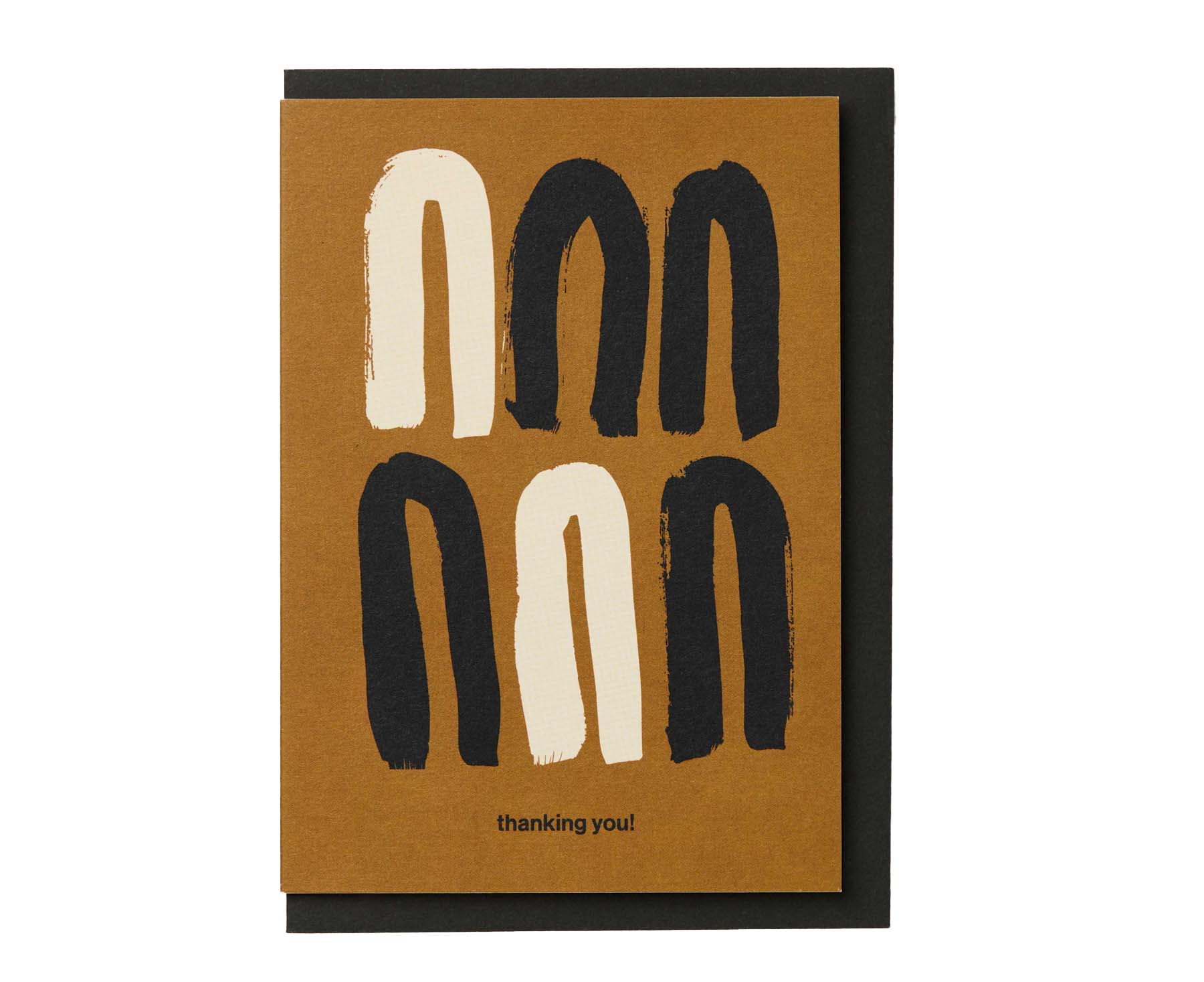 A simple thank you card with an abstract design featuring black and cream painted arches. It is one of Kinshipped's range of gorgeous cards in contemporary neutral tones.