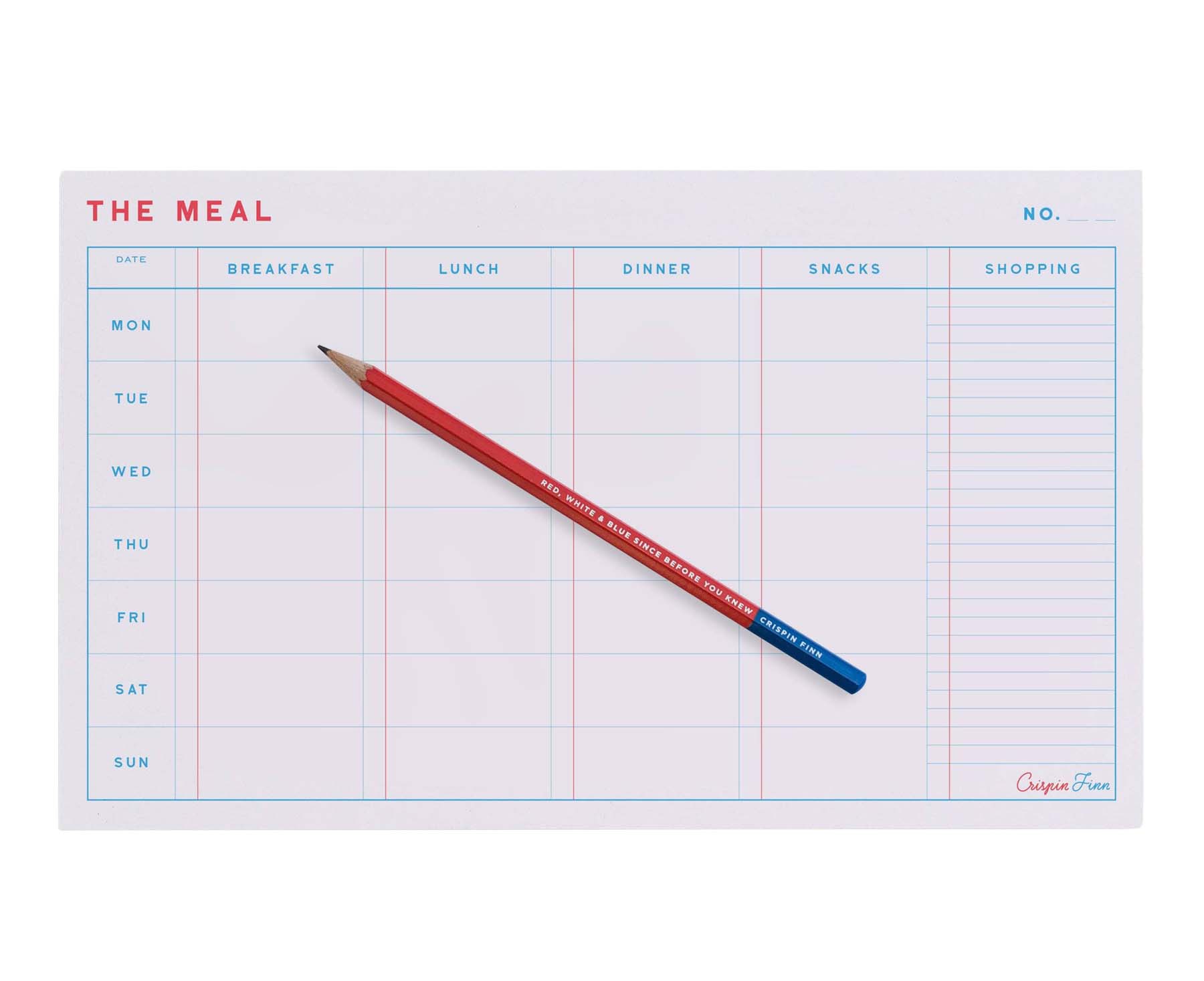 Organise your weekly food schedule with The Meal Pad. Clear layout with lined columns for every day's meal times and snacks, and a handy shopping list for ingredients. There's even a tickbox column so your can tick off your meals as you go. With 52 tear off pages it'll last you a whole year, and it comes in a gorgeous screen-printed kraft envelope with a custom Crispin Finn pencil.