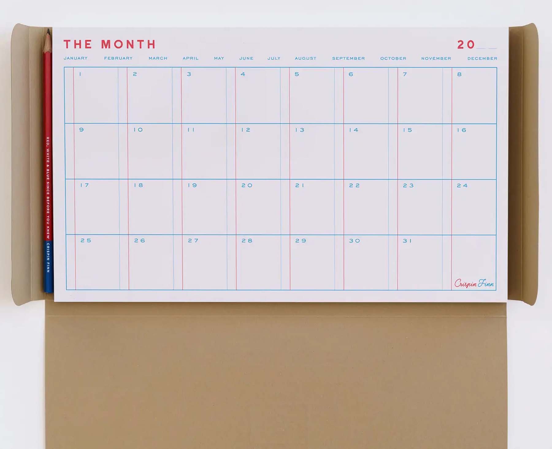 With a box for every day of the month, and columns to tick of your list of tasks as the days go by, this beautifully designed desk pad from Crispin Finn will get your months organised in no time. There are 50 tear off pages so it'll last you years, and it comes in a gorgeous screen-printed kraft envelope with a custom Crispin Finn pencil.