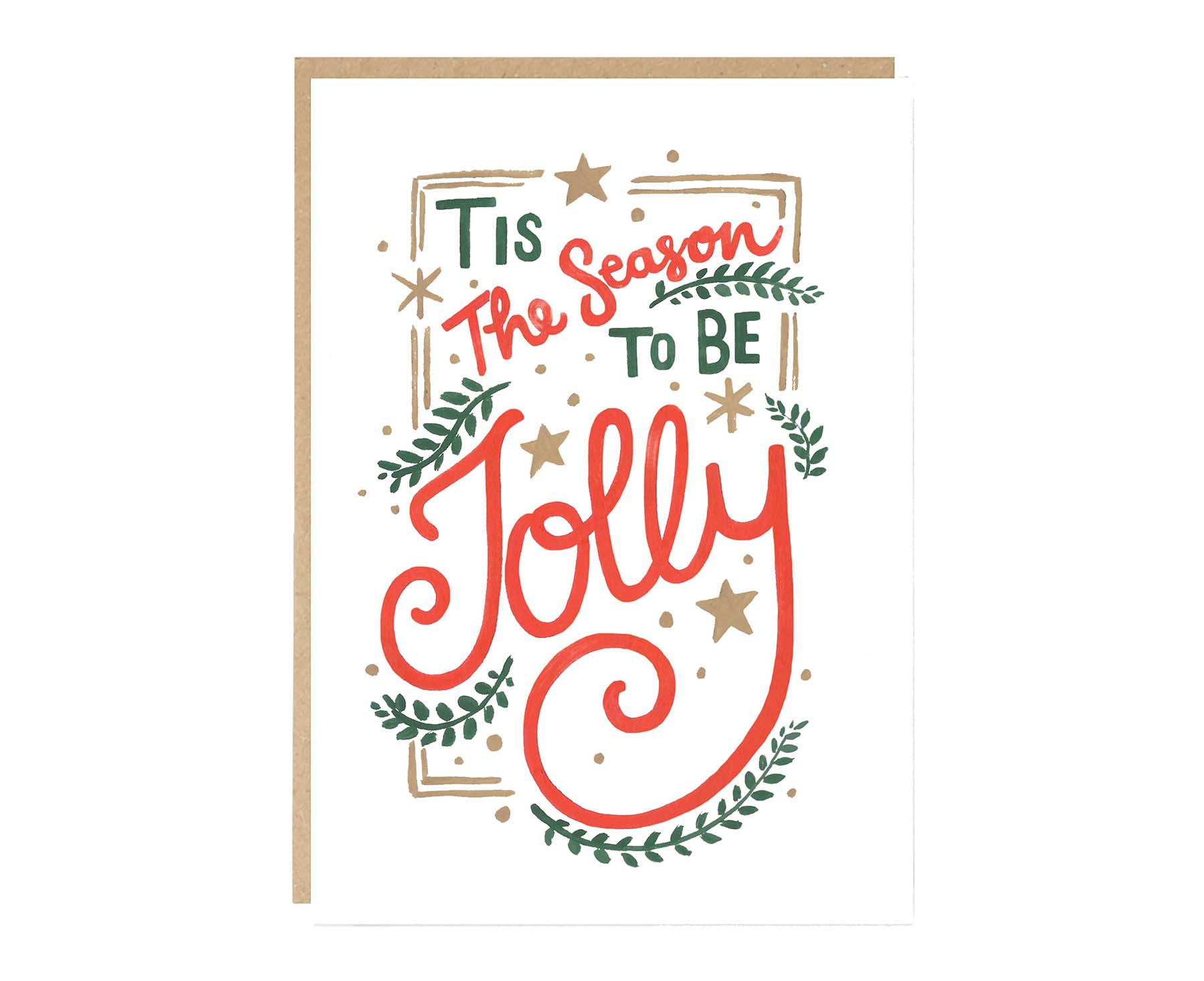 With its gorgeous festive hand lettering, this beautifully illustrated Tis The Season To Be Jolly Christmas card by Jade Fisher is full of charm and joy.
